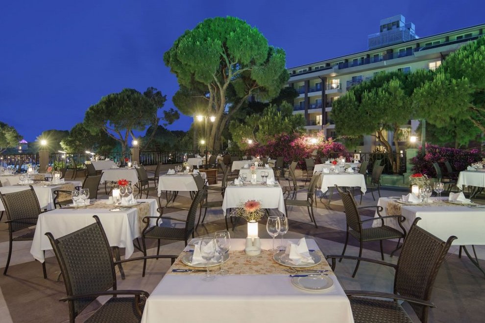 На разположение на гостите са основен ресторант (има диетична храна) и 5 а`ла карт ресторанта: италиански, рибен, турски, мексикански, далекоизточен (с предварително записване, при настаняване поне за 7 нощувки, посещението на 1 безплатно). Разнообразни напитки се преслагат в 5 бара, има и сладкарница.