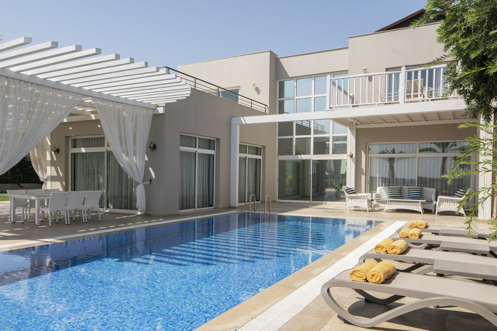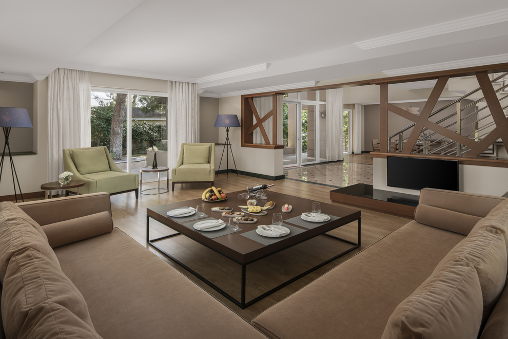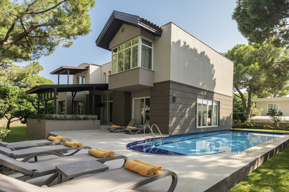 4 Deluxe Villa, с площ от 175 квадратни метра, разполагат със собствен отопляем басейн, три спални, баня с джакузи и елегантен декор, проектирани да настанят комфортно големи семейства до шест души, включват отворена кухня, напълно оборудван основен салон с дивани и LED телевизор, тераса и бани на двата етажа, собствен отопляем басейн