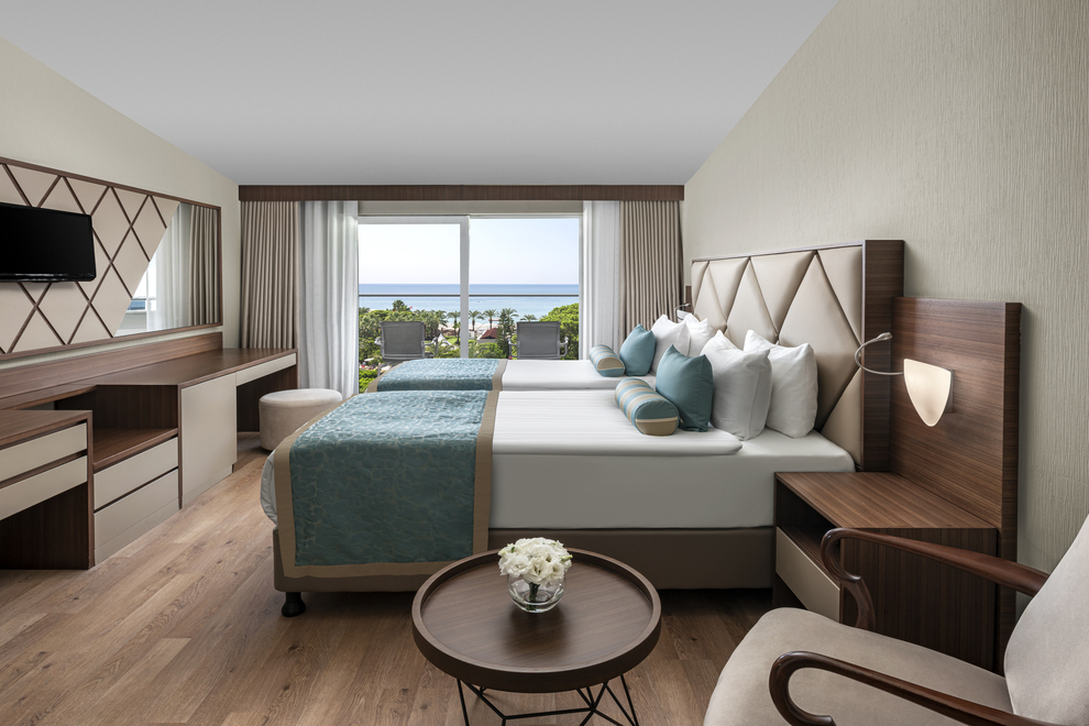 Standard Room с изглед към морето или градината, разположени между първия и петия етаж на основната сграда, максимално настаняване 2+1, площ 28 кв.м
