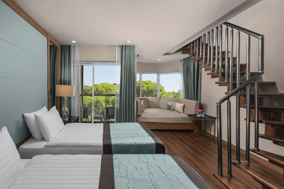 Duplex Family Room, разположена на етажа на фоайето и проектирана за удобно настаняване на големи семейства, максимум 5 човека, 74 кв.м