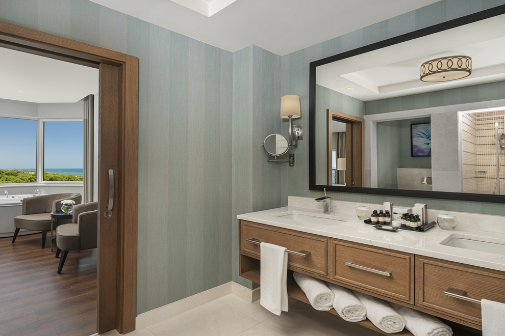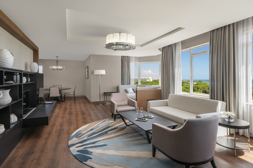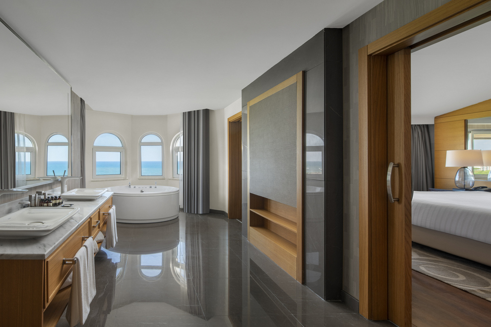 Хотелът се състои от една 8-етажна основна сграда и девет 2-етажни Luxury Pool Suite, в които са разпределени 356 климатизирани стаи, от които: