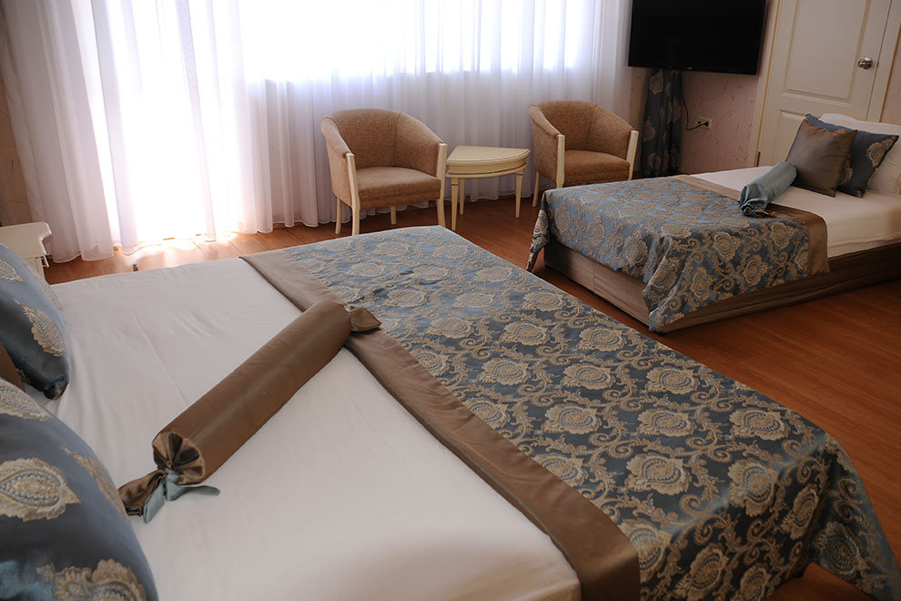 Хотелът се състои от основна 7-етажна сграда и посреща гостите си в 538 климатизирани стаи. Всяка стая има баня с душ, сешоар, сателитна телевизия, телефон, минибар, сейф. Ежедневно почистване на стаите.