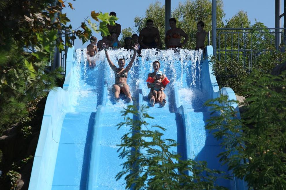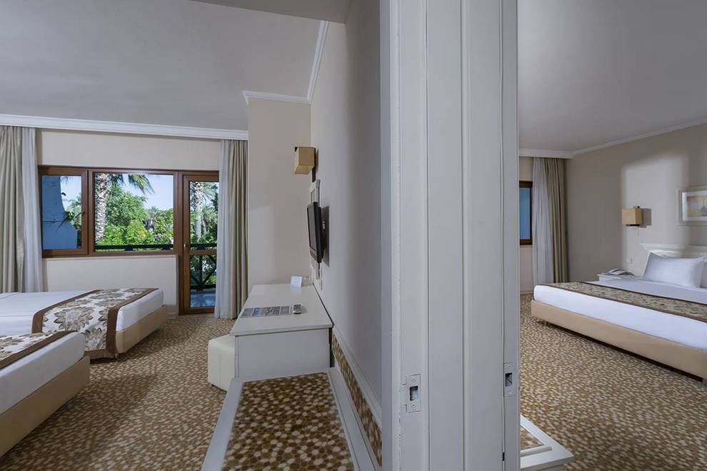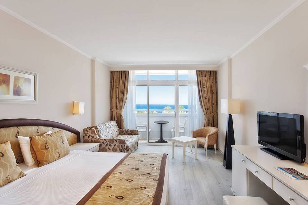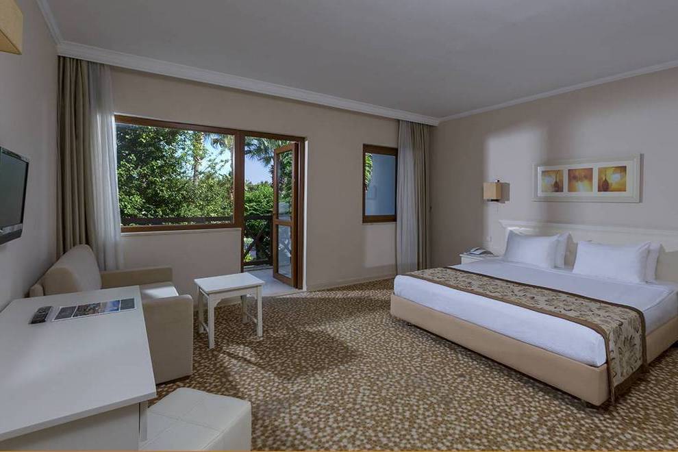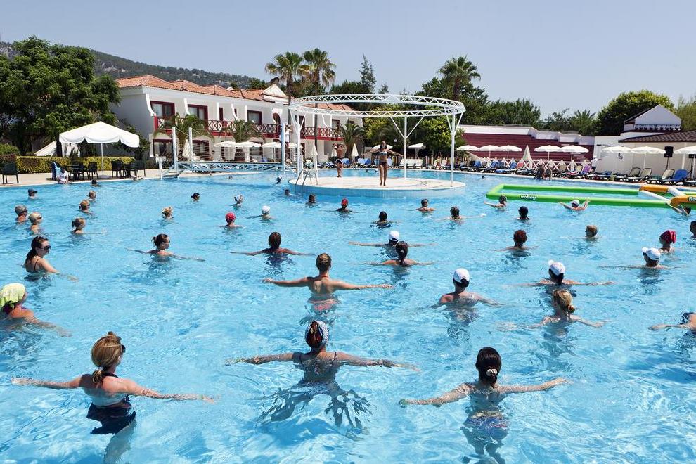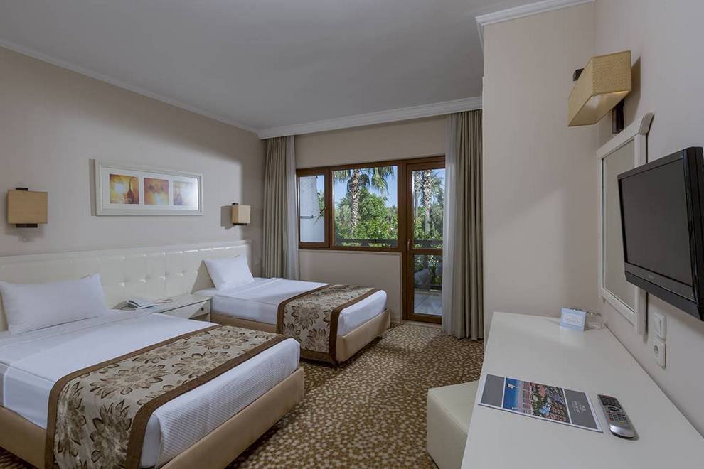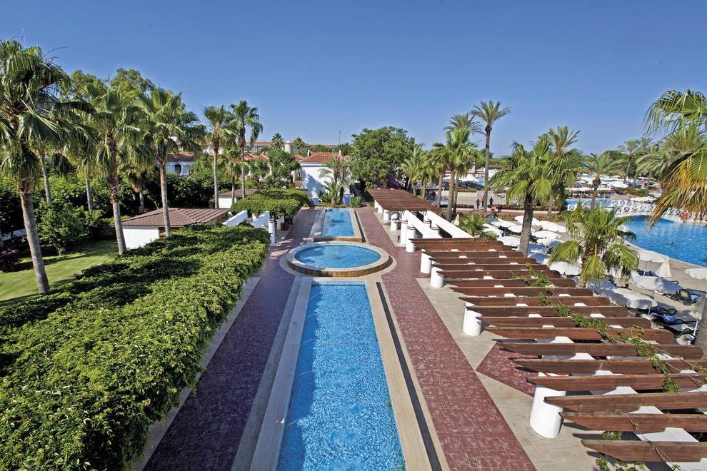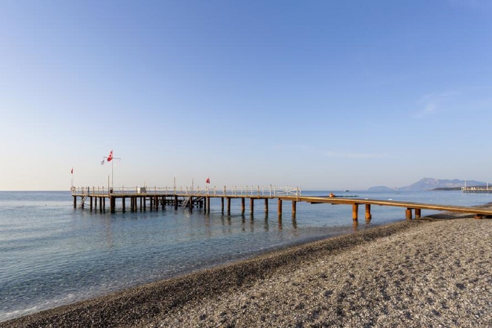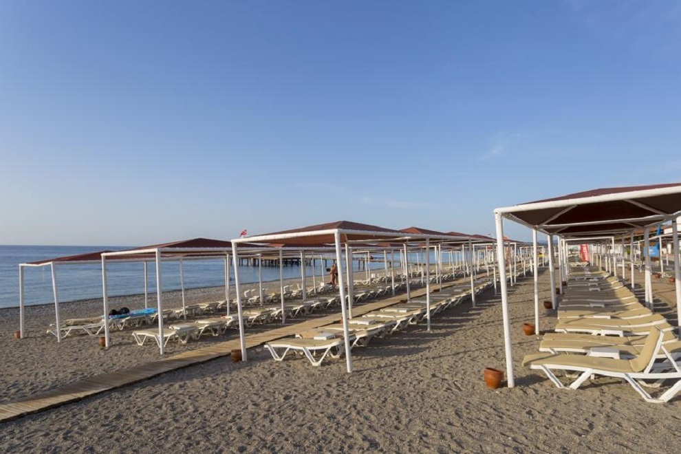 Хотелът се намира на първа линия и има собствен плаж. Хотелът има също 3 открити басейна с площ 1304 кв.м, 844 кв.м, с пързалки 121 кв.м. Закрит басейн, площ 200 кв.м, отопляван през студения сезон. Басейните са отворени от 08: 00-19: 00 ч. 2 водни пързалки (7+), работно време от 10: 00-12: 00 ч. и от 14: 00-17: 00 ч.