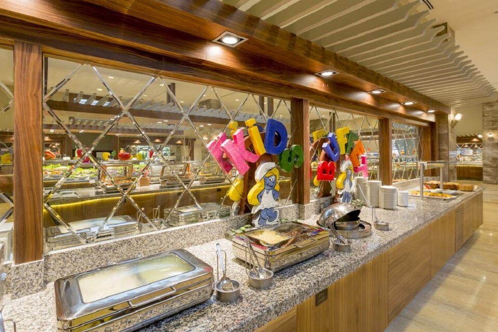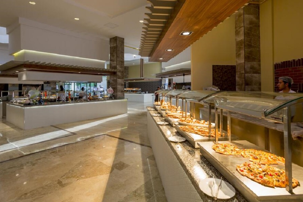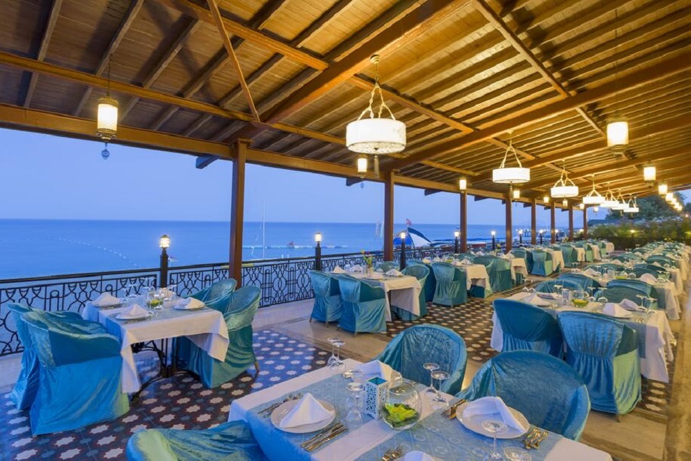 Хотелът има три ресторанта: Meridian Restaurant, където храната се поднася на шведска маса: закуска 07: 00-10: 00 ч., късна закуска 10: 00-11: 00 ч., обяд 12: 30-14: 30 ч., вечеря 19: 00-21: 30 ч., късна вечеря и ранна закуска 21:30 - 07:00 ч. Restorante Italiano, в който предлагат италианска кухня с меню а`ла карт и Yakamoz Restaurant, в който поднасят средиземноморска и турска кухня с меню а`ла карт. Барове: Пиано лоби бар: 09: 00-24: 00 ч., алкохолни и безалкохолни напитки; Бар на басейна: 10: 00-00: 00 ч., алкохолни и безалкохолни напитки; Плажен бар: 10: 00-19: 00 ч., безалкохолни напитки и бира; Meridian Service Bar: 02: 00-07: 00 ч., предлагат се алкохолни и безалкохолни напитки.