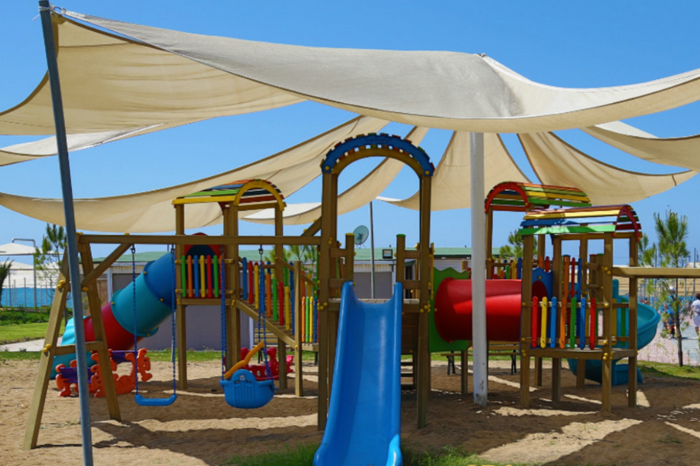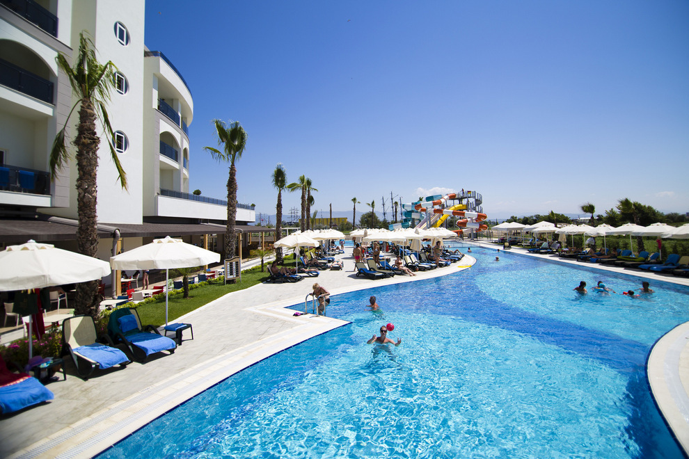 Собствен пясъчно-чакълест плаж на 300 м от хотела. На разположение на гостите са и два външни басейна, единият с 6 водни пързалки за възрастни.