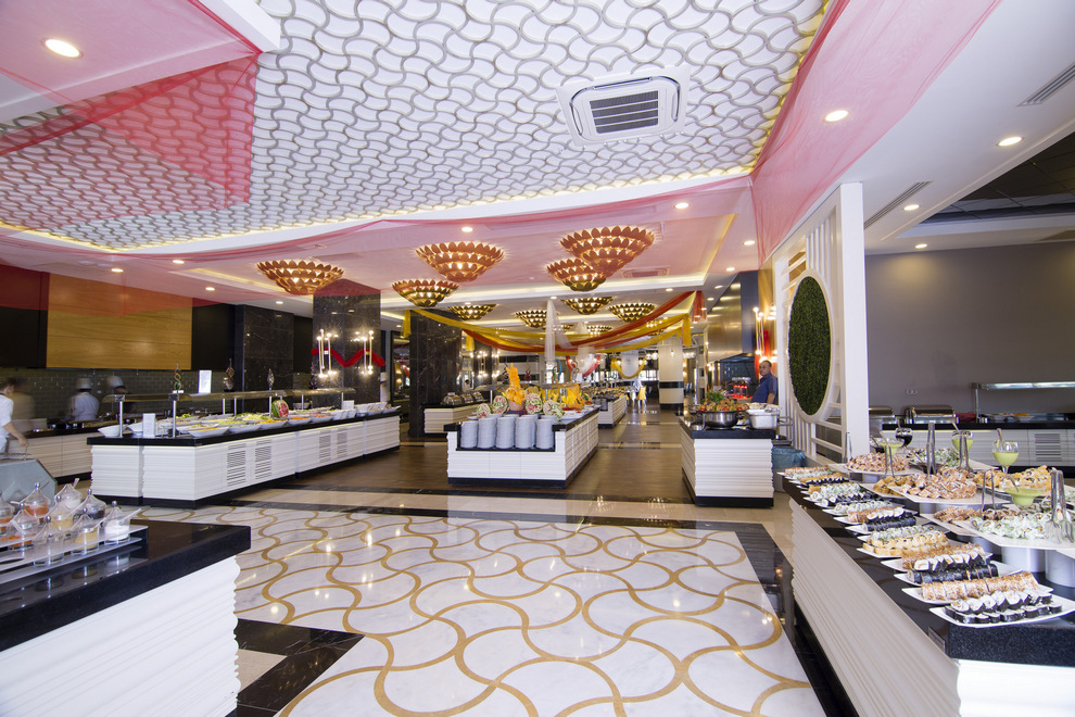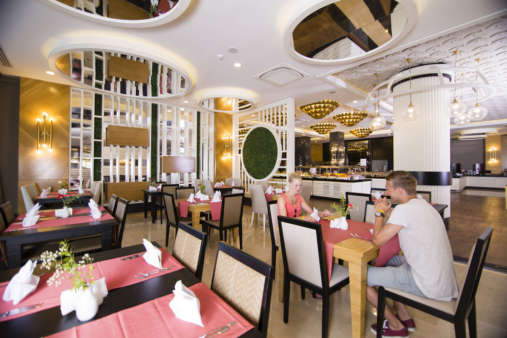 на разположение на гостите са основен ресторант и три а`ла карт ресторанта: с южно-анталийска кухня, черноморска кухня и ресторант On the Beach. Освежаващи напитки и закуски се поднасят в четири бара - лоби бар, бар при басейна, бар на плажа и диско бар.