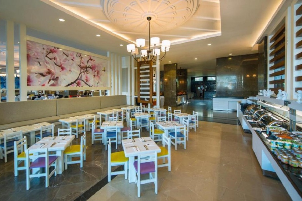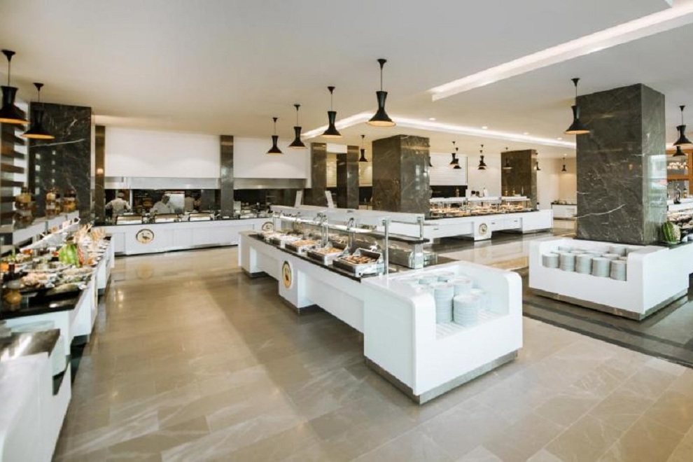 Хотелът има един основен ресторант и 5 а`ла карт ресторанта, 7 бара, гьозлеме пекарна и снекбар. Базата Premium Ultra All Inclusive включва закуска, обяд и вечеря на блок маса, разнообразие от допълнителни закуски и неограничена консумация на местни и някои вносни алкохолни и безалкохолни напитки – 24 часа в денонощието. Основният ресторант работи: закуска – 07:00-10:00 ч.; късна закуска – 10:00-11:00 ч.; обяд – 12:30-14:00 ч.; вечеря – 18:30-21:00 ч.; среднощна закуска – 23:00-24:00 ч. Вечер се предлага диетичен и вегетариански бюфет. През останалото време снекбаровете на комплекса предлагат различни закуски.