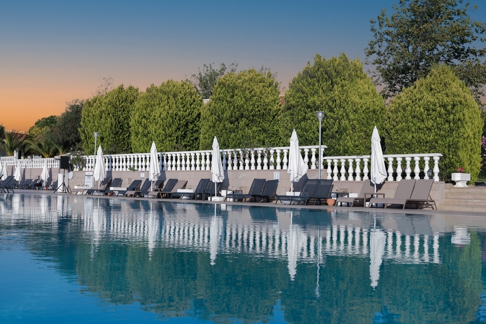 Хотелът се намира на собствен пясъчен плаж, има и платформа. За удобство на гостите предлага 2 открити басейна (единият само за възрастни). Чадъри, шезлонги, кърпи и матраци при басейна и на плажа се предоставят безплатно.