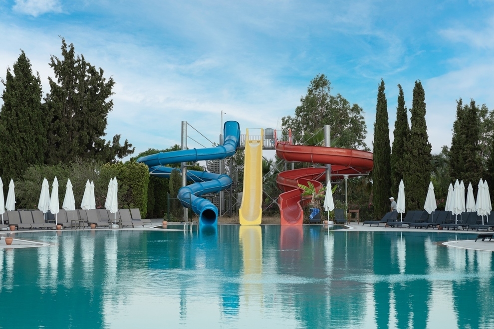 Хотелът предлага възможности за отдих и забавления на 1 открит плувен басейн, 1 детски басейн и 1 закрит басейн с подгряване на водата, 3 водни пързалки, СПА център, сауна, турска баня, джакузи, фитнес център, тенис корт, уиндсърф, мини клуб, детска площадка, дискотека, интернет кафе.