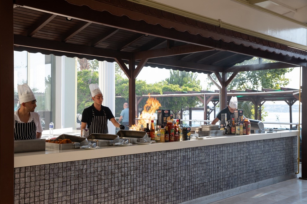 Хотелът разполага с 1 основен ресторант (основно ремонтиран през 2020 г.) с открита и закрита секции и 4 а'ла карт ресторанта - турски, средиземноморски и италиански (едно посещение с предварителна резервация - за почивка от 7 нощувки - безплатно). На територията на хотела има 6 бара - на лоби, бар на басейна, бар в градината, снек бар, бар на плажа и бар в дискотеката. Ultra All inclusive концепцията включва закуска, обяд и вечеря на шведска маса, междинни хранения, местни алкохолни и безалкохолни напитки без лимит (24 часа, съгласно концепцията на хотела).