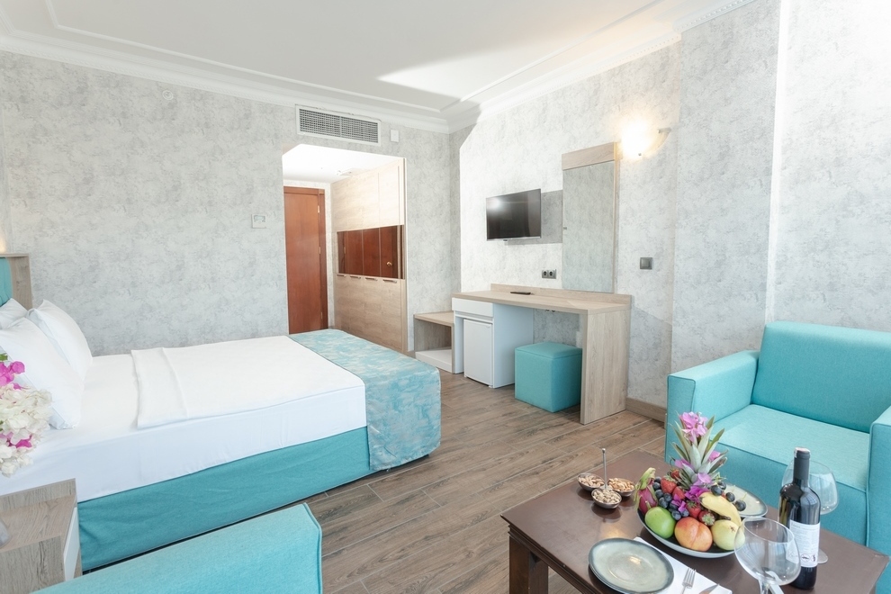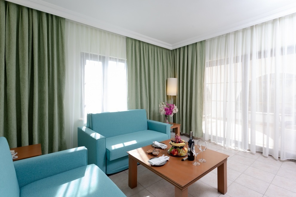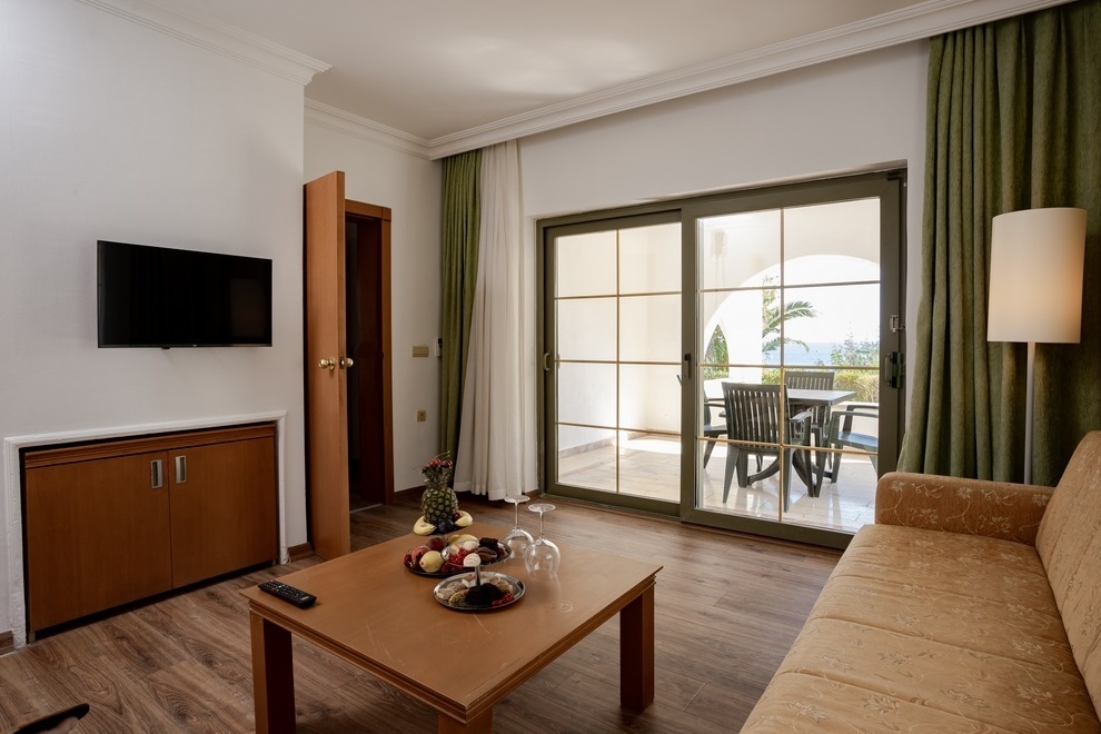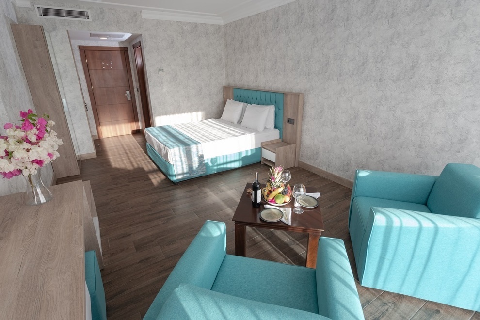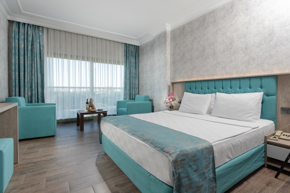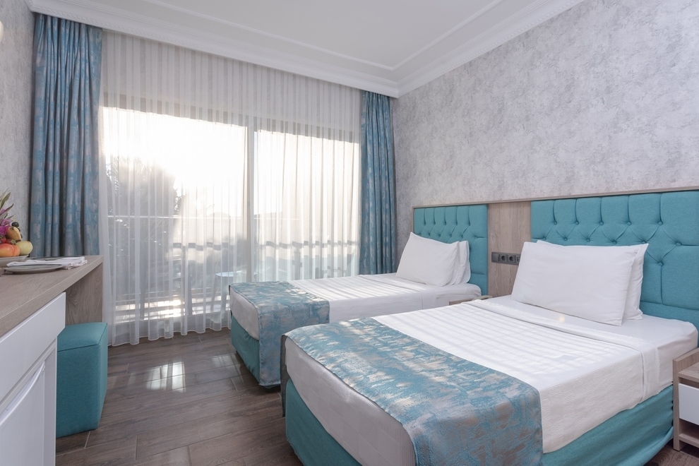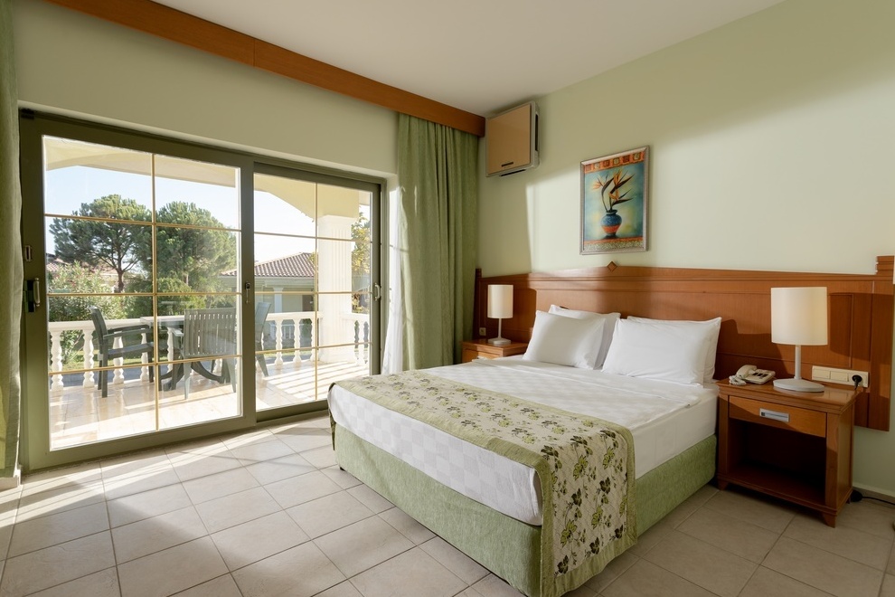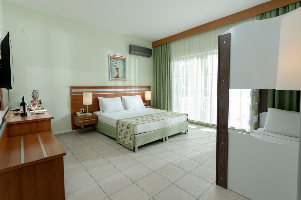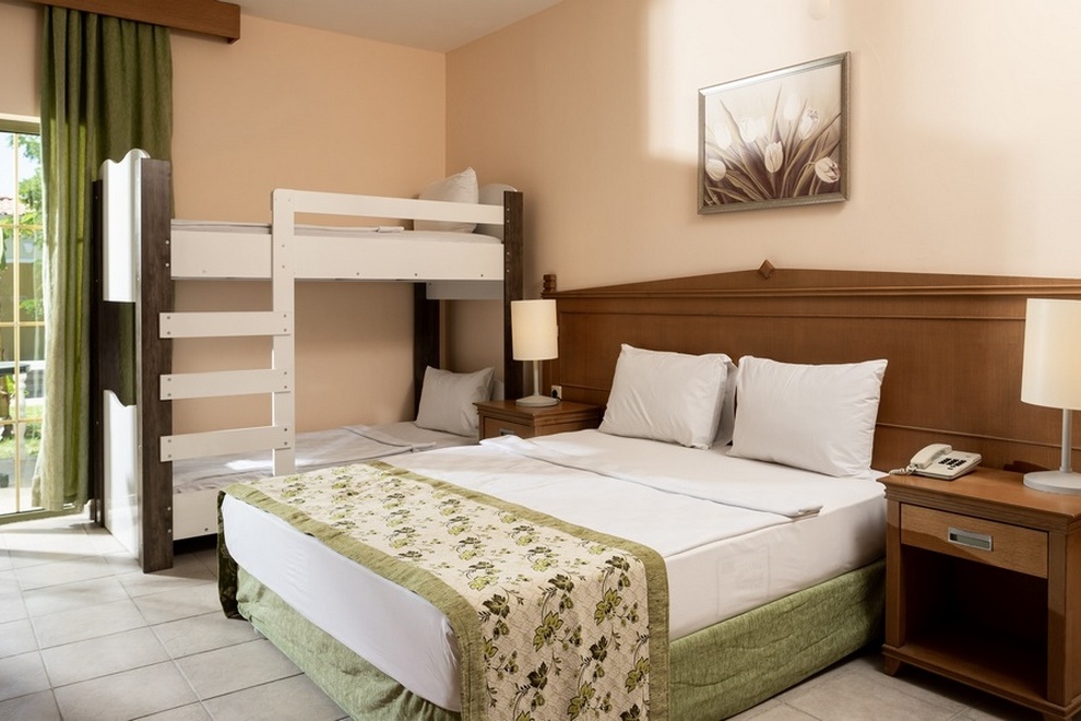 Хотелът разполага общо с 362 стандартни и фамилни стаи за гости, които са разположени в една триетажна сграда и 84 вили. Фамилните стаи са с две стаи. Във вилите част от стандартните стаи са с настаняване 2+2 с двуетажни легла за децата. Всички стаи са оборудвани с индивидуален климатик, телевизор, баня с душ, сешоар, мини-бар (зарежда се с вода безплатно), сейф, балкон. Стаите се почистват всеки ден, спалното бельо се сменя три пъти седмично.