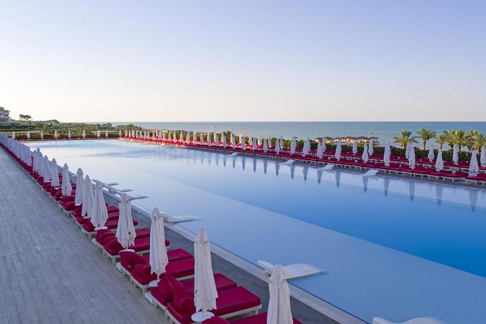 Собствен пясъчен плаж. 5 открити басейна (2 от които на вилите) и 1 закрит басейн, водни пързалки Чадъри, шезлонги и плажни кърпи се ползват безплатно.