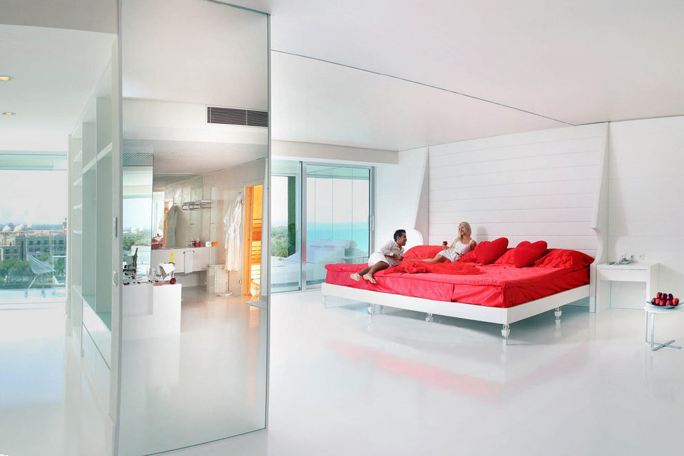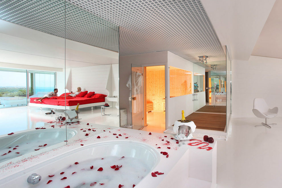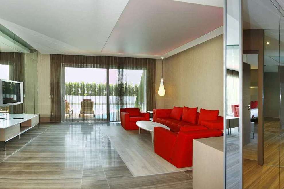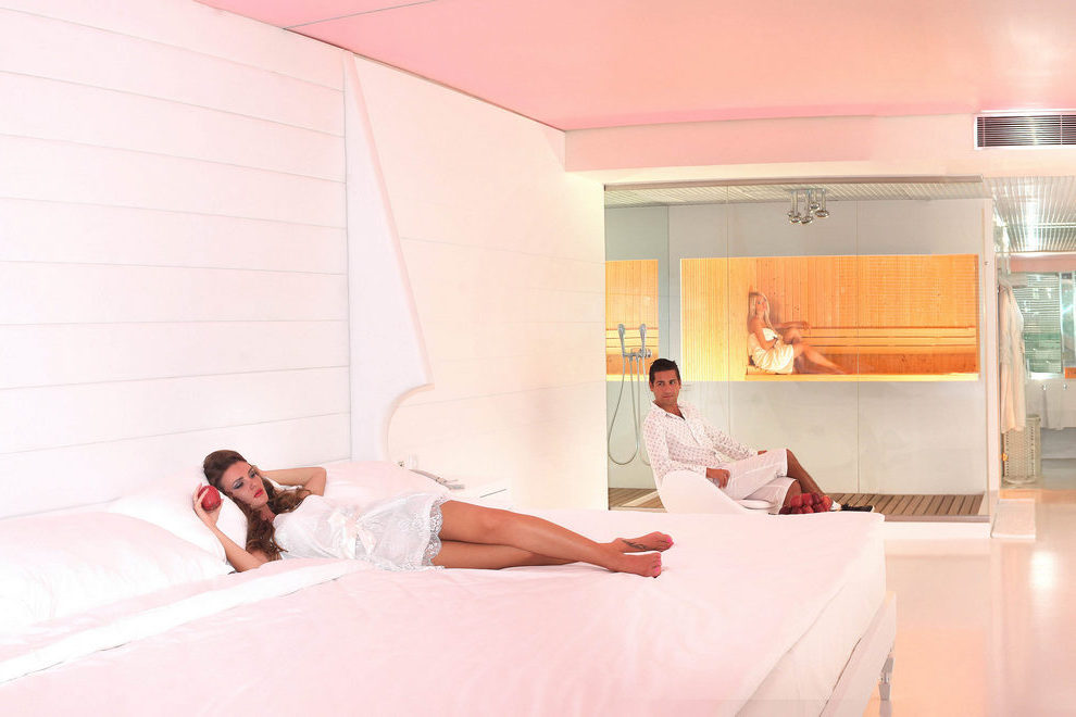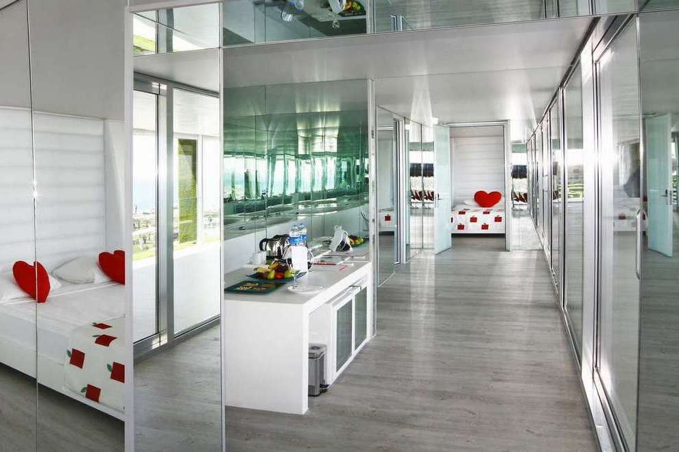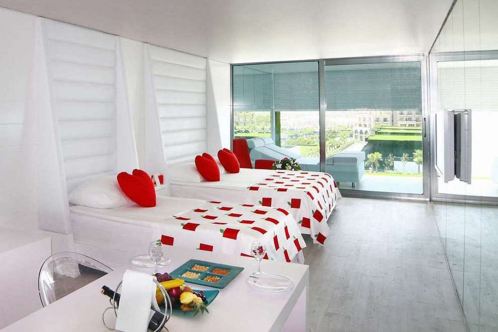 Всички стаи са оборудвани с дизайнерски мебели, червено осветление, климатик, телевизор, телефон, сет за кафе/чай, минибар (безплатен), сейф (безплатен), максибар (платен), светещо огледало за гримиране, терапевтично легло на терасата, баня с душ/вана + парна баня, сешоар, халат (при поискване), чехли, джакузи (без стаите за инвалиди), .