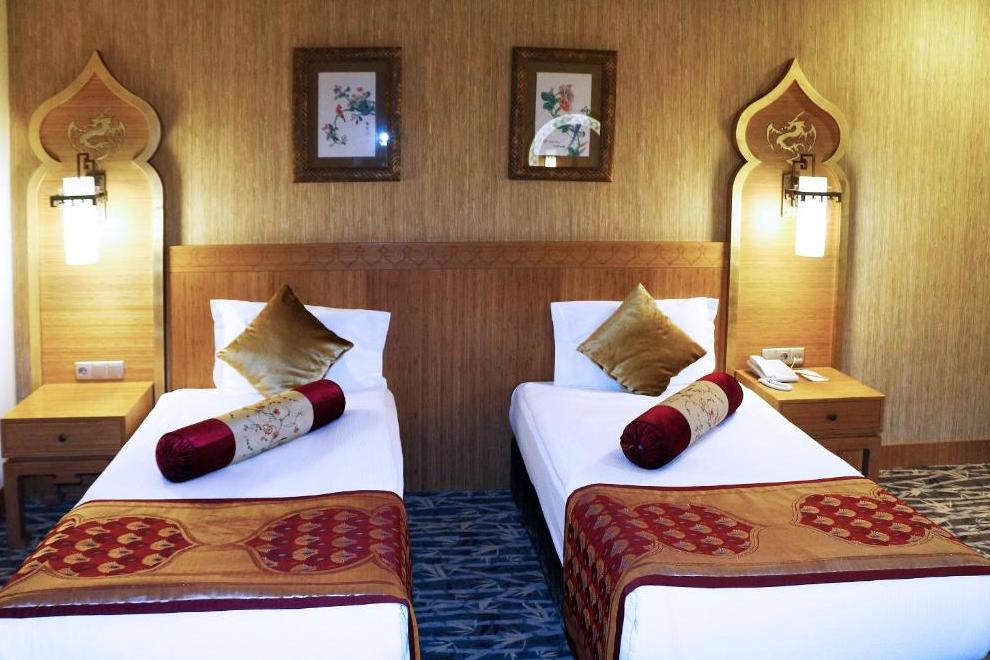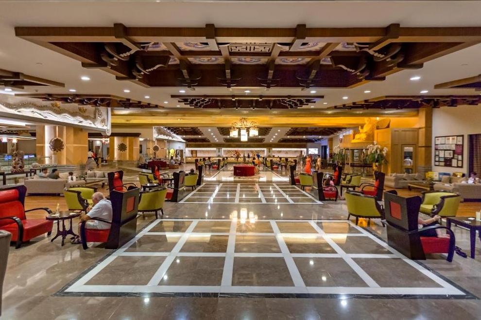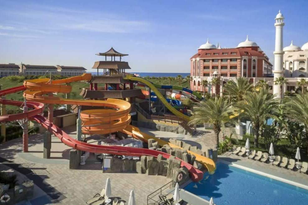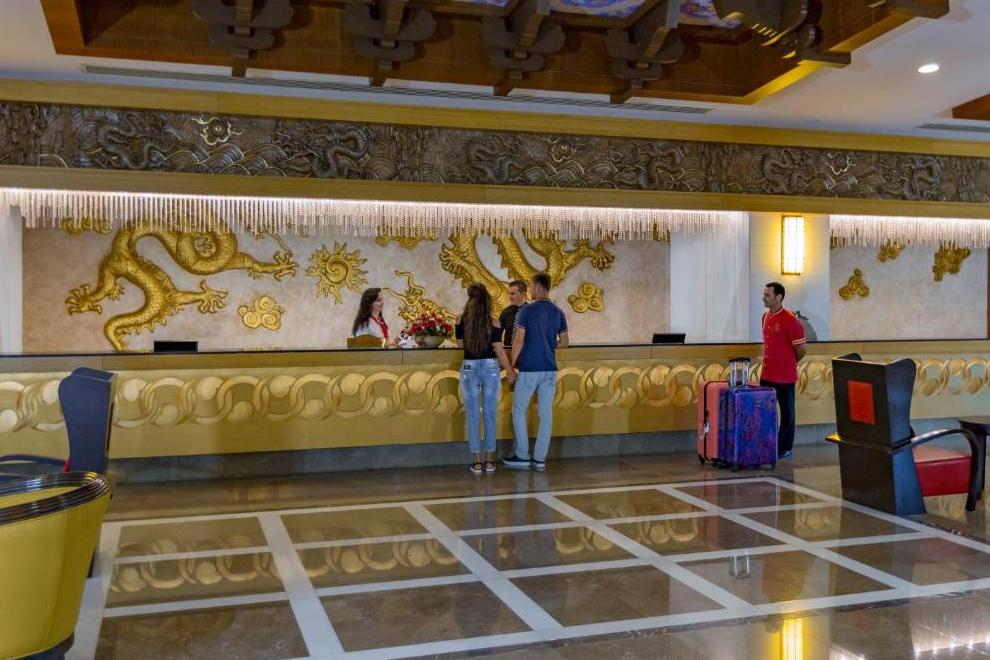 Royal Dragon е на 5 километра от град Сиде. Международното летище на Анталия е на 53 километра. Този плажен хотелски комплекс се намира на Турската ривиера. Декориран е в китайски стил и предлага закрит и открит басейн, увеселителен парк, алея за боулинг и СПА център. Разполага с ол инклузив помещения за настаняване на средиземноморското крайбрежие. Чудесен избор за семейна почивка. Последна реновация е направена през 2024 г.