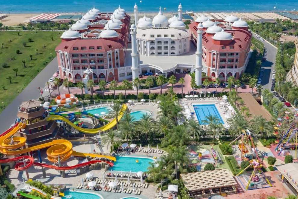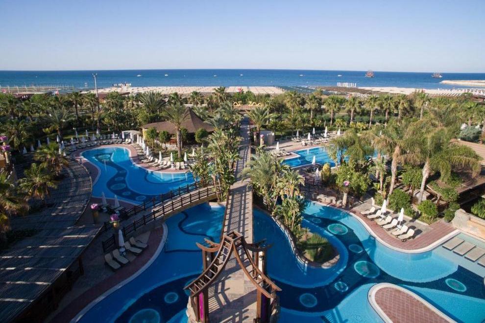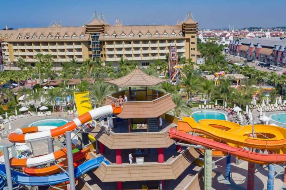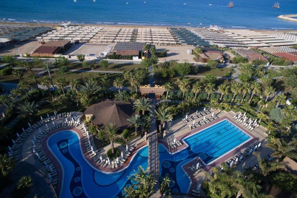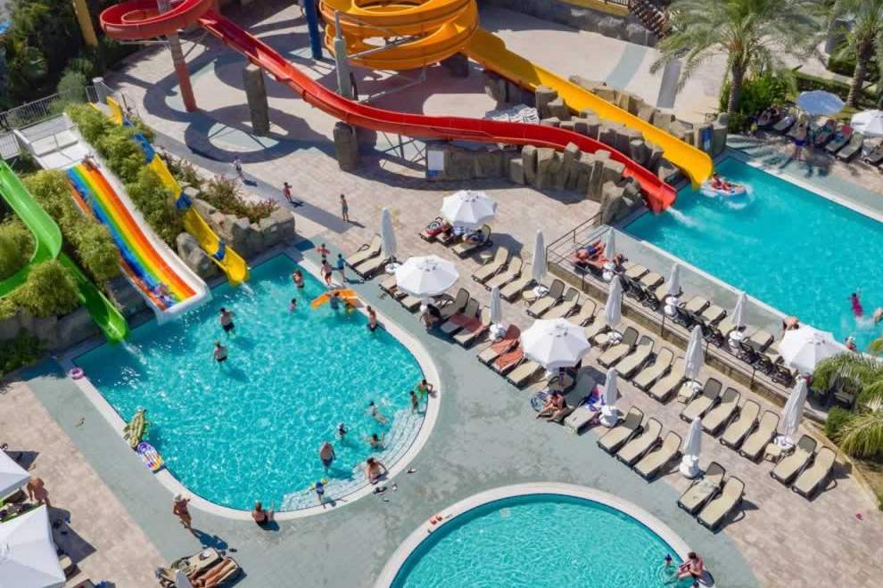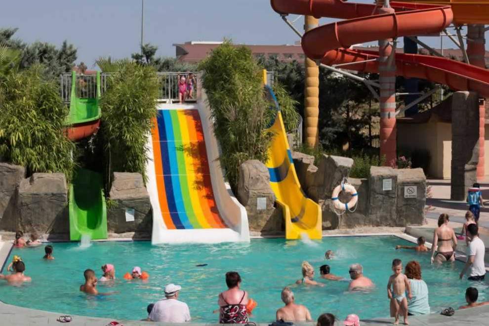Хотелът разполага със собствен пясъчен плаж. Между хотела и плажа има пешеходна алея. Предлага комфорта на 2 открити басейна с прясна вода, неотопляеми, площ 2500, 250 кв.м. 1 закрит отопляем басейн (отворен от 01.11 до 31.03), площ 460 кв.м. 5 водни пързалки за възрастни и 5 водни пързалки за деца, неотопляеми, работно време 10:00-12:00 ч. / 14:00-16:00 ч., началните/крайните дати на аквапарка зависят от метеорологичните условия. Външните басейни и пързалки са затворени през зимния сезон. Чадъри и шезлонги, плажни кърпи на плажа и при басейна се предоставят безплатно. Смяна на плажната кърпа – срещу заплащане.