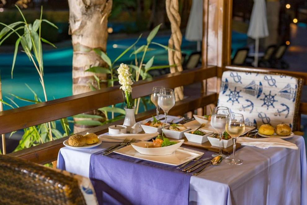 На разположение на гостите са основният ресторант Dragon Restaurant за закуска, късна закуска, вечеря; Vento снек ресторант за обяд и Notte Bistro за нощни закуски. 4 а`ла карт ресторанта: Dulciena A La Carte Restaurant - италиански, Zen A La Carte Restaurant - далекоизточна кухня, Firuze A La Carte Restaurant - турска кухня Dorado A La Carte Restauran - рибен ресторант. Освежаващи напитки и закуски с поднасят в 9 бара и сладкарница.