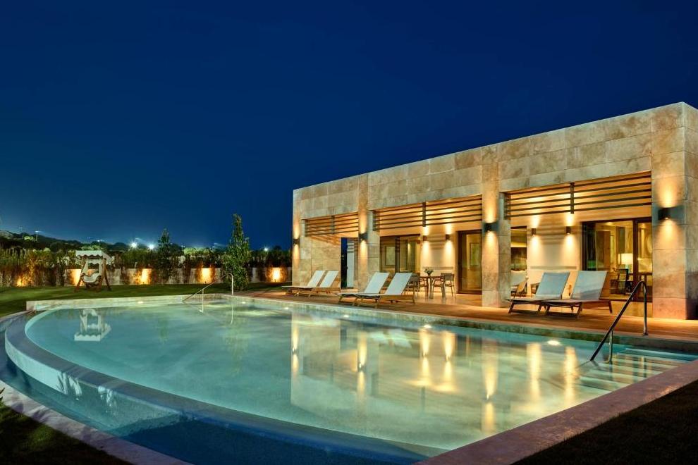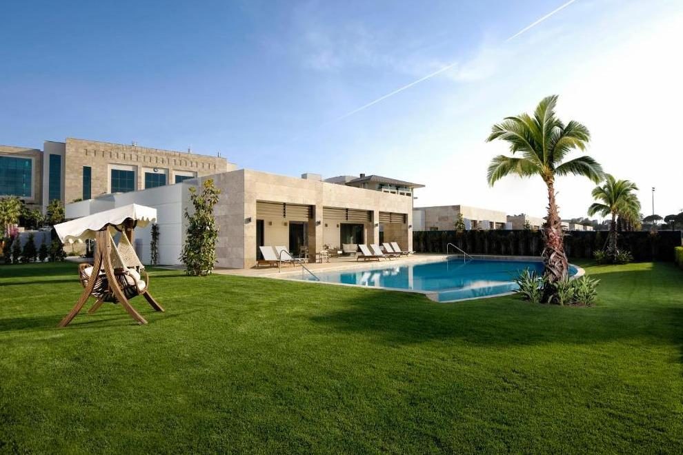 Стаи Villas: 13 Saphire Villa (3 спални, всекидневна с трапезария, кухненски бокс, 2 гардеробни, пералня, отопляем частен басейн – срещу заплащане, 3 бани, изглед към голф игрище и басейн, 400 кв.м), 4 Emerald Villa (3 спални, всекидневна с трапезария, кухня, гардеробна, пералня, отопляем частен басейн – срещу заплащане, 3 бани, сауна, изглед басейн, 600 кв.м), 2 Tiara Villa (5 спални, хол с камина, кът за сядане, трапезария, кухня, пералня, 2 гардеробни, фитнес зала, стая за масаж, сауна,джакузи, отопляем частен басейн – срещу заплащане, 5 бани, хидромасажна вана, изглед към голф игрище и басейн, 1500 кв.м), 1 Crown Villa (6 + 2 спални, 2 всекидневни с кът за сядане, камина, кухня, СПА зона, джакузи, фитнес, перално помещение, асансьор, отопляем частен басейн – срещу допълнително заплащане, 8 бани, хидромасажен басейн, самостоятелна зона за слънчеви бани, вътрешен отопляем басейн, кино салон с джакузи, спалня с джакузи, изглед към голф игрище и басейн, 3500 кв.м), 1 Crown Villa The Cave (скрито жилищно пространство с басейн в Грото стил).