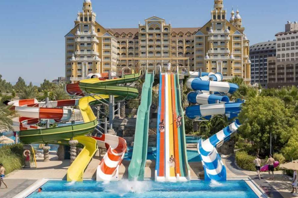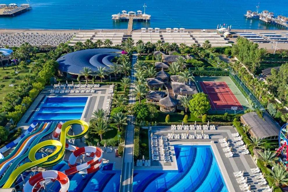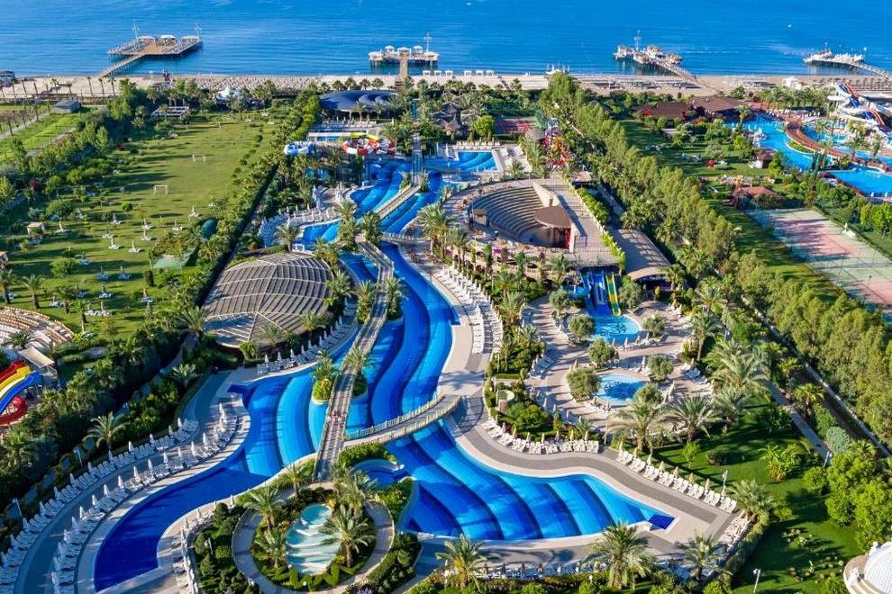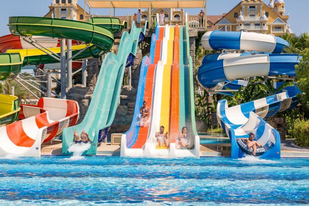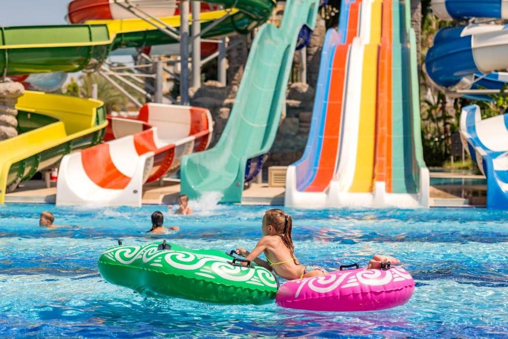 Хотелът разполага със собствен пясъчно-чакълест плаж със сертификат Син флаг. На разположение на гостите има 4 открити и 2 закрити басейна, 8 водни пързалки. Чадъри и шезлонги на плажа и при басейна се ползват безплатно, плажни кърпи – срещу депозит.