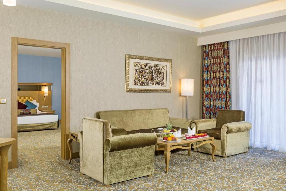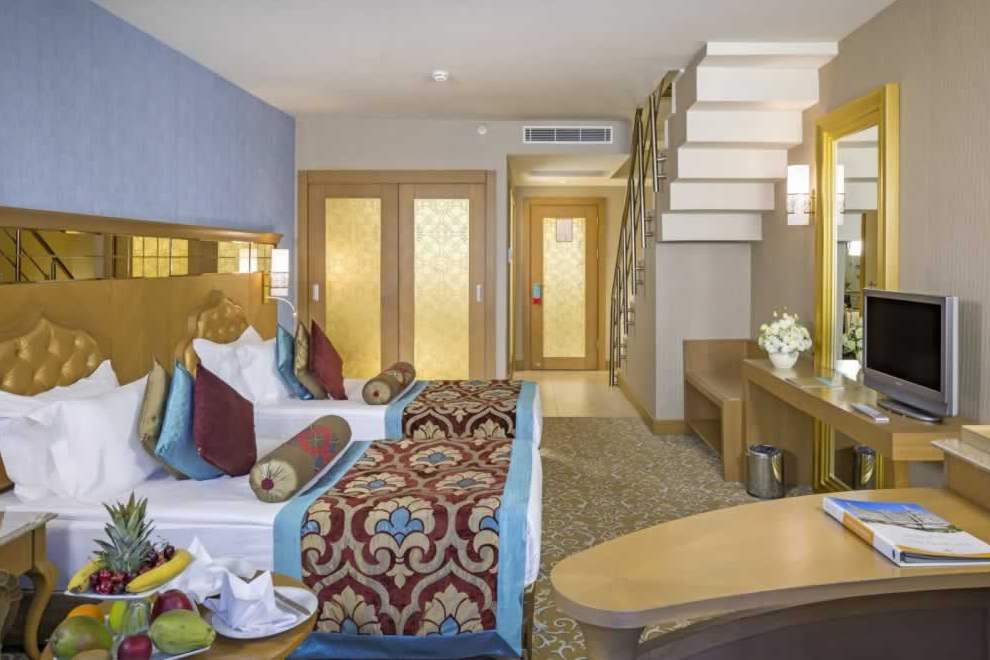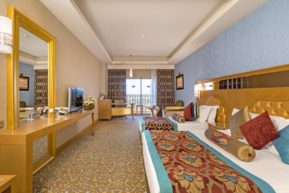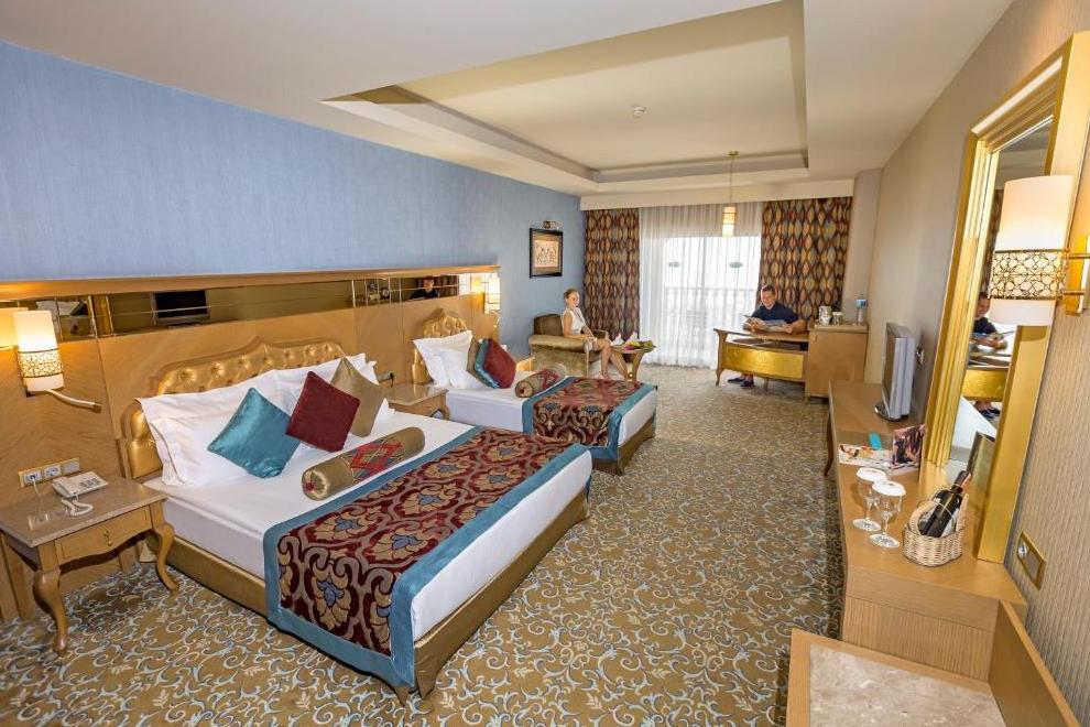 Този 5-звезден луксозен хотелски комплекс се намира до плажа Лара в Анталия, сред 53 000 кв.м живописни градини. Разполага със СПА център, басейн с водни пързалки и лунапарк. Международно летище Анталия е на 15 км от Royal Holiday Palace, а центърът на Анталия - на 17 км. На място има безплатен частен паркинг.