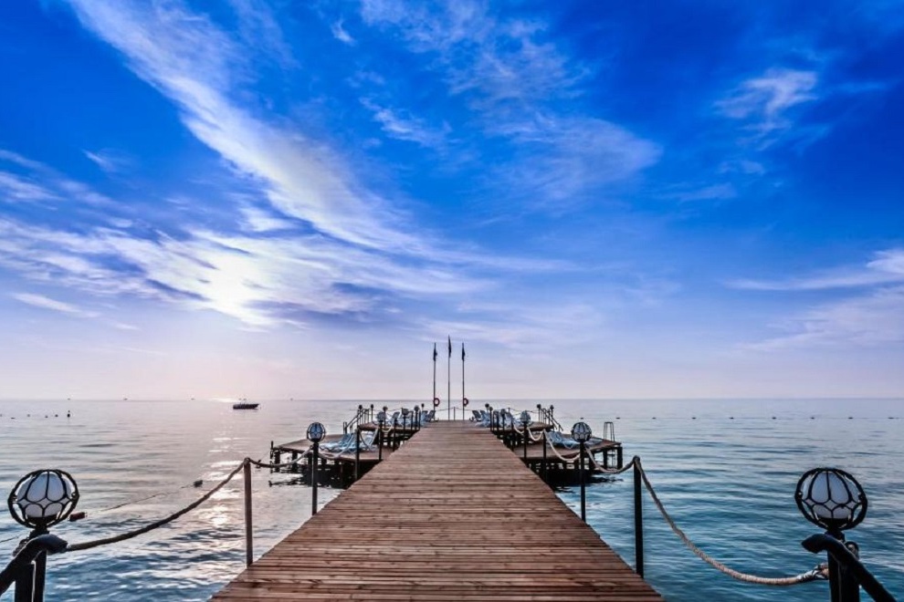 Собствен пясъчно-чакълест плаж, дълъг 275 м и кей. На разположение на гостите са 1 открит и един закрит басейн.