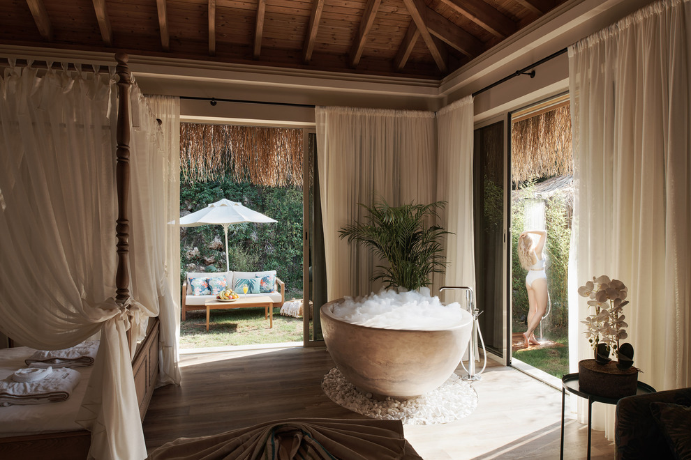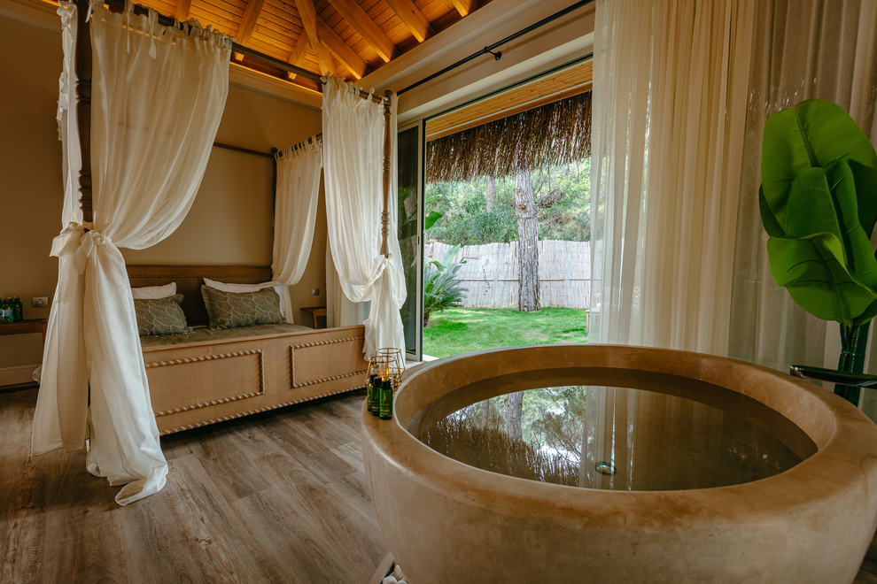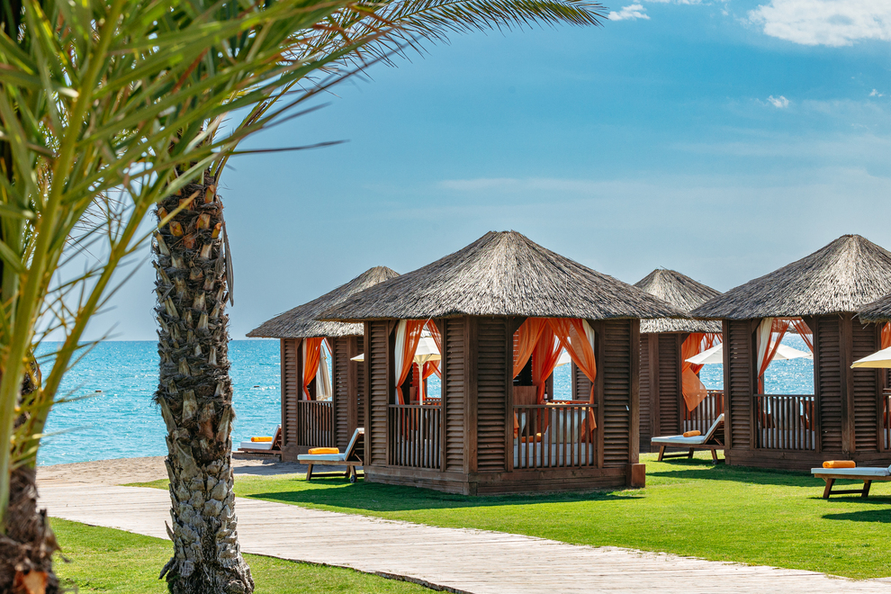 Хотелът предлага 700-метров частен пясъчен плаж и кей. Аквапарк с площ 12000 кв. метра в троянски стил, с водни пързалки. 2 външни и 2 вътрешни басейна. Чадъри, плажни кърпи и шезлонги на плажа и при басейна се ползват безплатно.