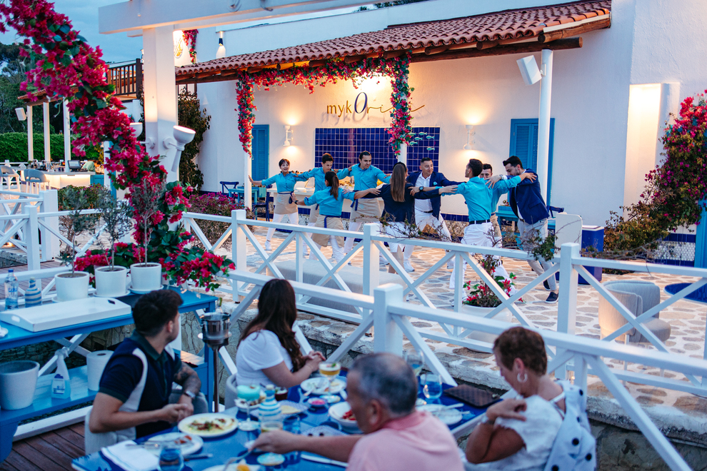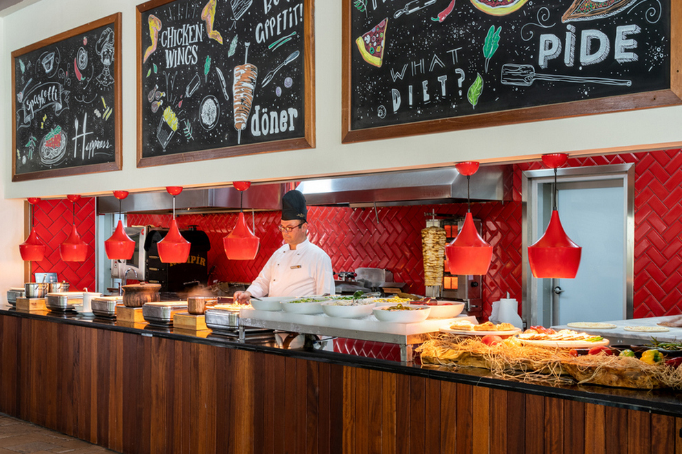 На разположение на гостите са основен ресторант и 4 а`ла карт ресторанта: Turquoise restaurant - международна кухня, отворен за закуска: 07.00 - 11.00 ч., обяд: 12.30 - 14.30 ч., вечеря: 19.00 - 21.30 ч. късна вечеря: 23.30 - 03.00 ч., неделен брънч: 11.00 - 14.30 ч. People's restaurant - интернационална кухня, отворен денонощно. Аkşam restaurant - стекхаус, отворен 18:30-21:30 ч. Рiazzetta Italiana - италиански ресторант, отворен 18:30-21:30 ч. Z'asya restaurant - паназиатска кухня, отворен 18:30 - 21:30 ч. Мykorini restaurant - гръцка кухня, отворен 18:30-21:30 ч. Food Court - освежаващи напитки и вкусни закуски, отворен 12:00-17:00 ч. Godiva Café - вкусни закуски и сладкиши, отворен 07:00-23:00 ч. Rixy restaurant - детски ресторант, Rixos Lounge - международна кухня. Starbucks. Разнообразни напитки се предлагат в лоби бар, бар на плажа, Irish Sports Вar, Troy Вar, C Вar, Mood Night Club.