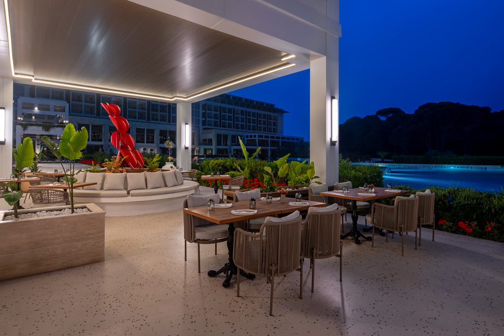 Хотелът разполага с най-дългия частен плаж в региона Белек, който е дълъг 700 метра. За малките гости от всички възрасти е осигурен пълен набор от развлекателни и образователни услуги. Хотелът разполага с 4 ресторанта а'ла карт, 10 бара и детски ресторант. Ускореният Wi-Fi дава достъп до мрежата. Интернетът е безплатен навсякъде в хотела.