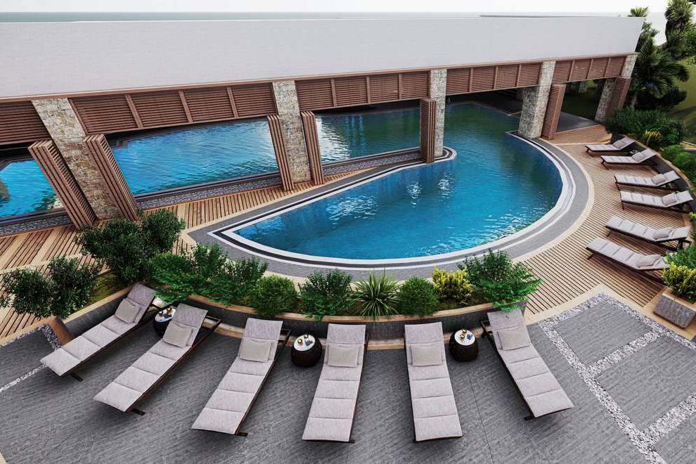 Хотелът се намира на първа линия и има собствен плаж, носител на Син флаг, с платформа и частна платформа само за гости на вилите. И двете платформи са Adults Only. На разположение на гостите са два открити басейна, Rixy аквапарк, водни пързалки и тераса за слънчеви бани. Чадъри, шезлонги и матраци на плажа и при басейна се ползват безплатно, плажни кърпи – срещу депозит.