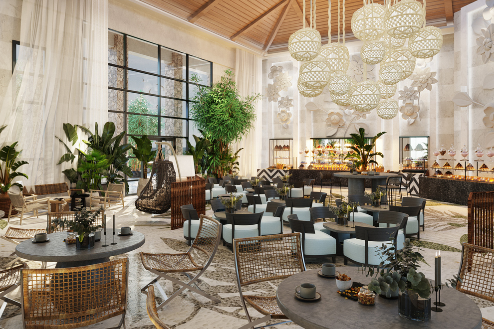 Хотелът има основен ресторант A La Minute/Turquoise, 3 а`ла карт ресторанта - рибен Kalamata; италиански L`olivo; азиатски Umi Teppanyaki ;1 снек ресторант; 1 ресторант за гости на вилите Cleopatra. Гостите могат да опитат освежаващи напитки и леки закуски в 8-те бара - 24-часов лоби бар, бар на плажа, бар при басейна, нощен бар, бар на кея, арт бар, нощен клуб, винен бар. Има също 1 сладкарница, Street food щандове, детски ресторант в Rixy Kids Club. ALL INCLUSIVE ALL EXCLUSIVE концепцията включва закуска, обяд, вечеря и междинни хранения на шведска маса, алкохолни и безалкохолни напитки местно производство и някои вносни - без лимит (съгласно концепцията на хотела). Включени премиум напитки: уиски, коняк и бренди, водка, текила, ром, ликьор, бира.