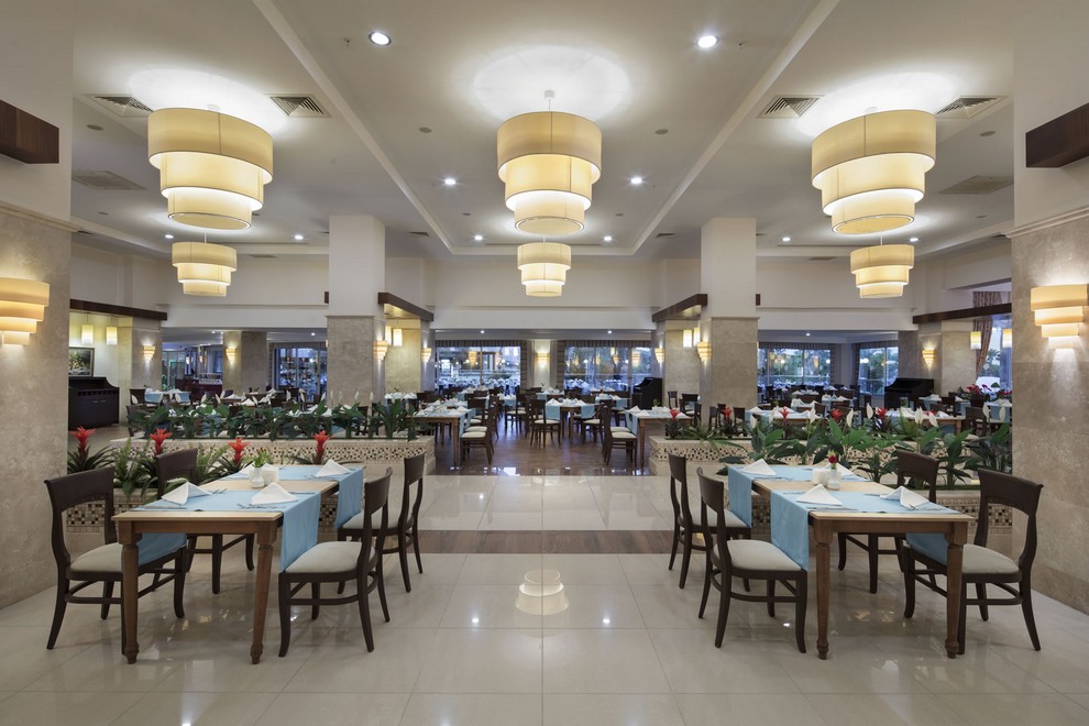 Хотелът разполага с основен ресторант, 2 а`ла карт ресторанта (италиански, турски, с предварително записване, 1 безплатно посещение по време на престоя), 5 бара, диетично меню, вегетарианско меню.