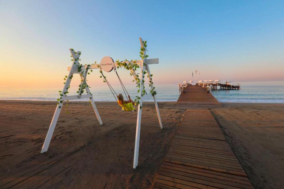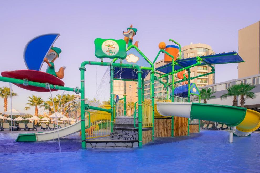 Хотелът има собствен пясъчен плаж. За удобство на гостите си предлага и 8 открити басейна, аквапарк със 7 пързалки за възрастни и 3 за деца. Шезлонги, чадъри, матраци, плажни кърпи на плажа и при басейните се предоставят безплатно.
