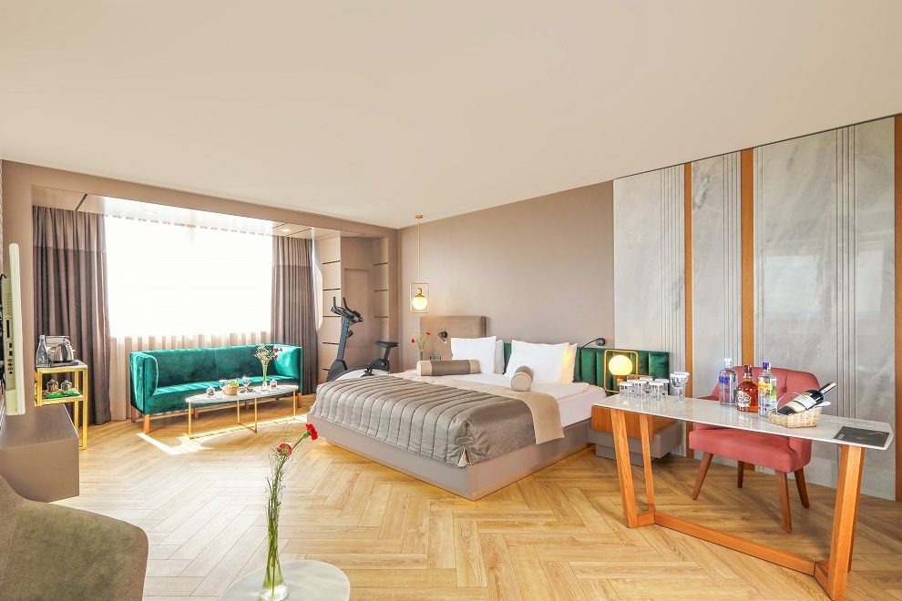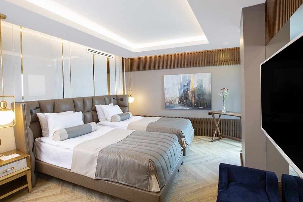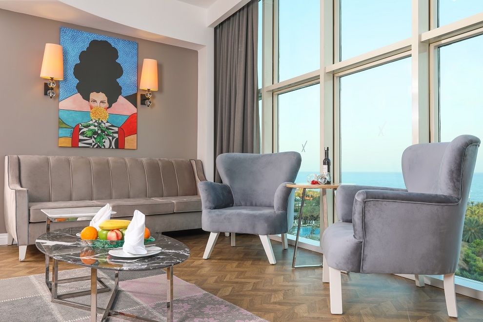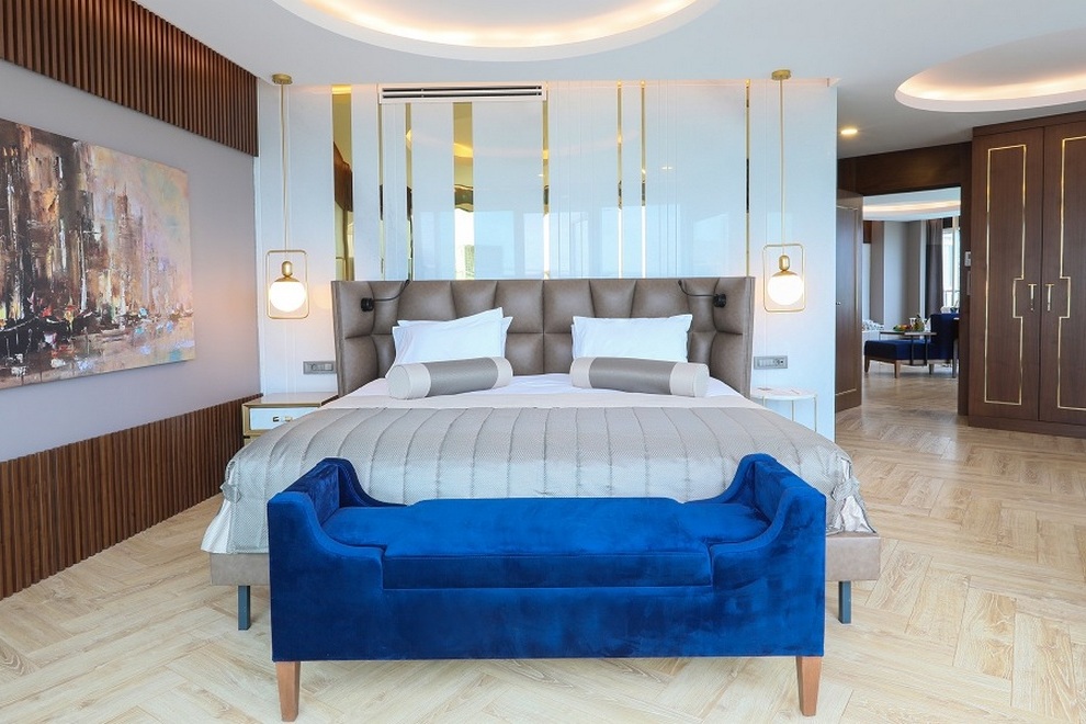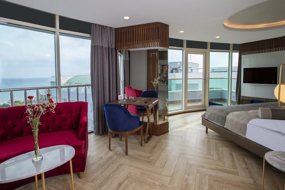 Хотелът се състои от две 9-етажни сгради със 7 асансьора. Посреща гостите си в 499 стаи, с изглед към морето, градината, басейна и планината. Климатизираните стаи имат минибар, сет за чай и кафе, сателитна телевизия, директен телефон, сейф (безплатно), балкон, диван, допълнително легло (при поискване), баня с душ, сешоар. Ежедневно почистване на стаите, спалното бельо се сменя ти пъти седмично.