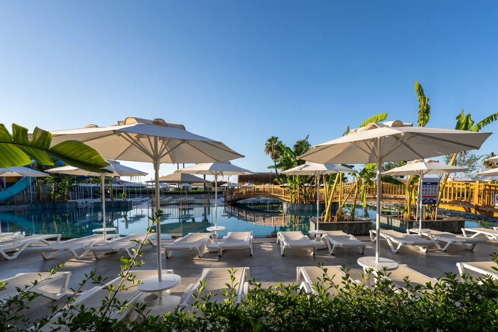 Хотелът има собствен плаж и тераса за слънчеви бани. Бар на плажа. Предлага на своите гости удобствата на басейни, детски басейн и водни пързалки.