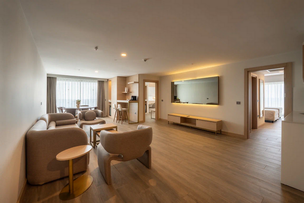 King Suite са луксозни апартаменти с площ от 137 квм, с две спални и голяма всекидневна. Идеални за 4+1 гости, търсещи максимален комфорт, с две бани и първокласни услуги.