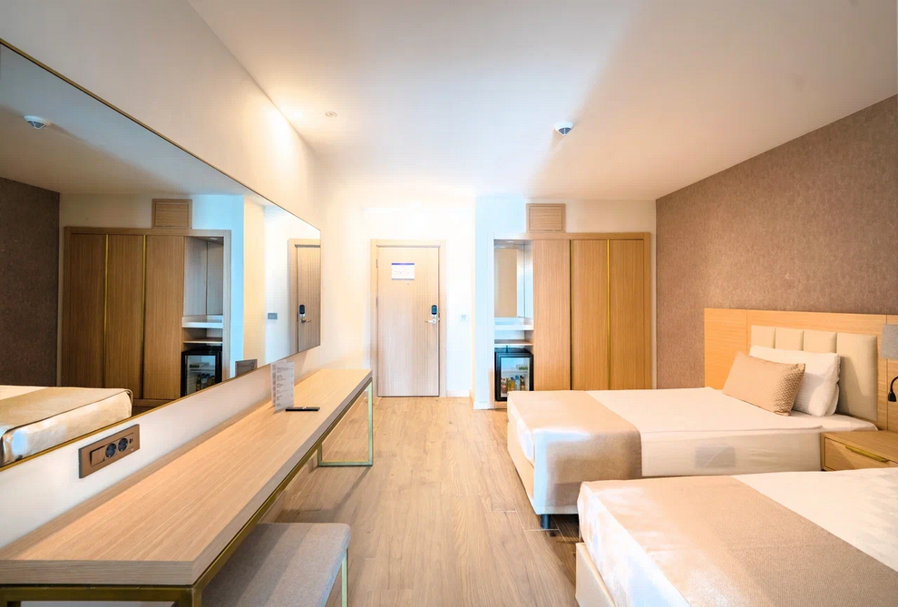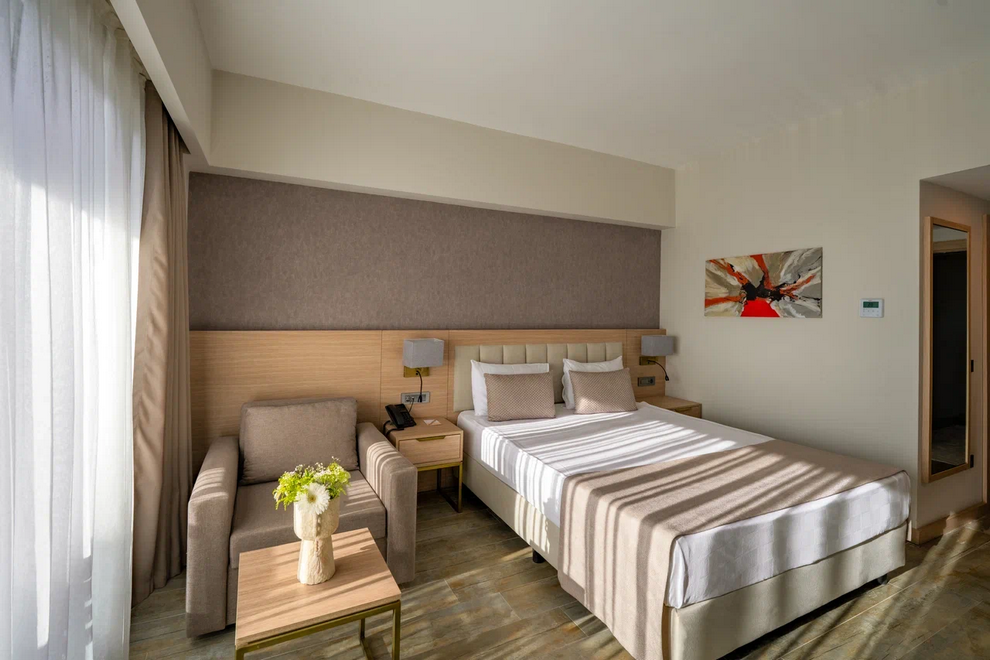 Standard Room с площ от 27 кв.м, с капацитет 2+1, балкон и керамичен под. Разполагат с минибар, 55-инчов Smart TV и безплатен Wi-Fi.