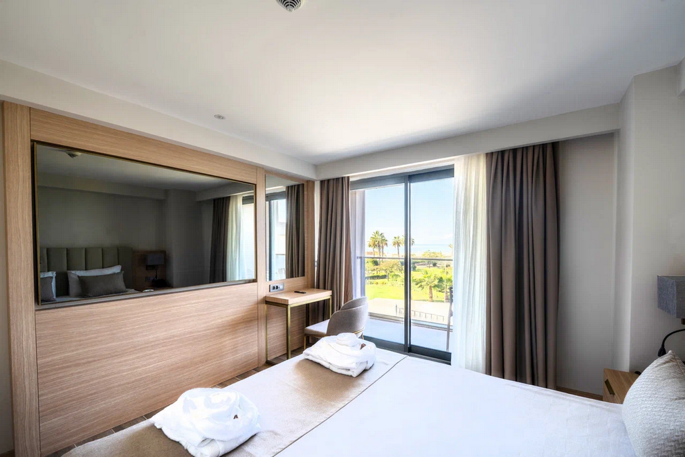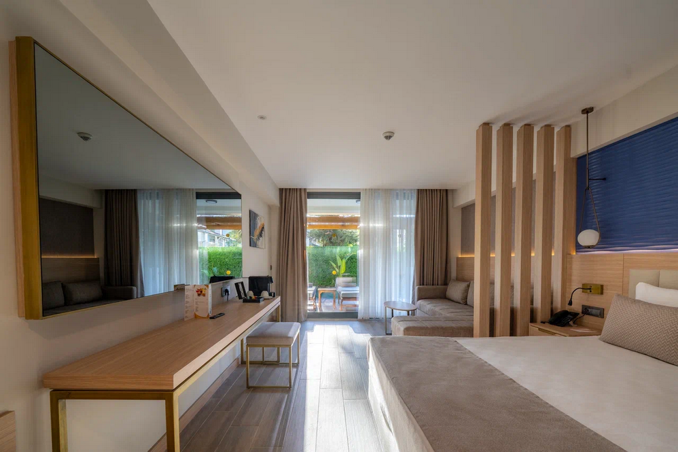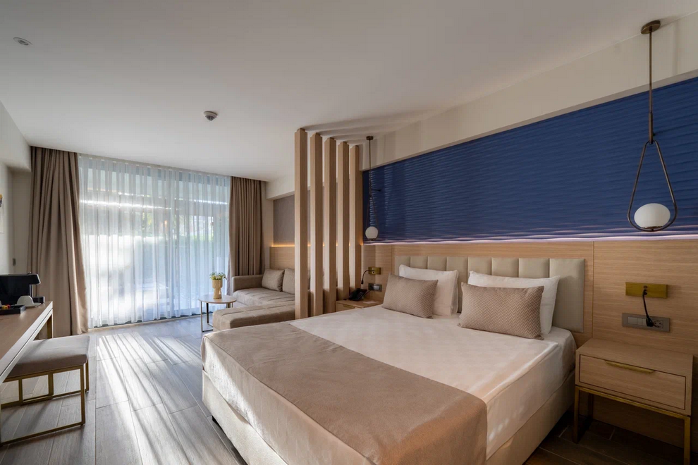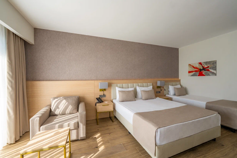 Superior Room с площ от 34 кв.м, с капацитет 3+1, модерен дизайн и балкон. Оборудвани с минибар, кафемашина с капсули и Smart TV.