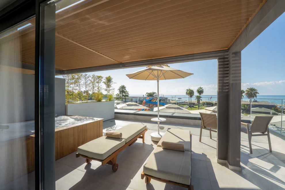 Swim-Up Room са специални стаи от 40 кв.м с директен достъп до басейна и тераса. Идеални за 2+1 гости.