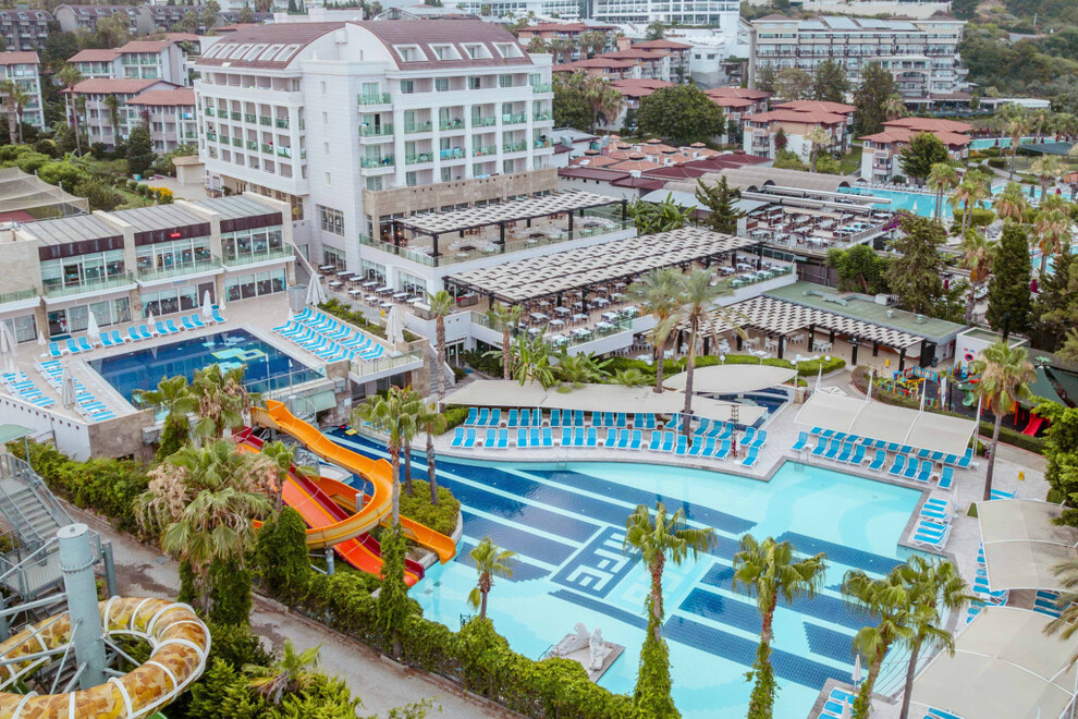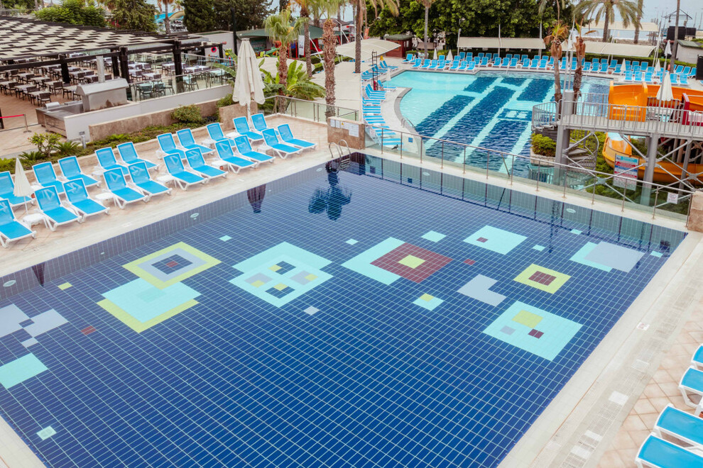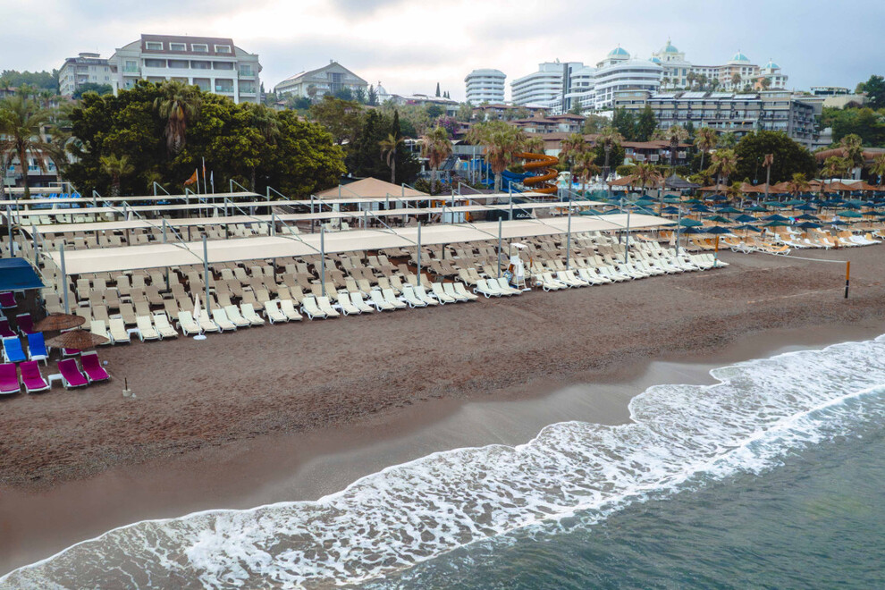Хотелът разполага със собствен пясъчен плаж. На разположение на гостите са 2 открити басейна, един закрит, две водни пързалки. Чадъри, шезлонги, плажни кърпи и матраци на плажа и при басейна се ползват безплатно.