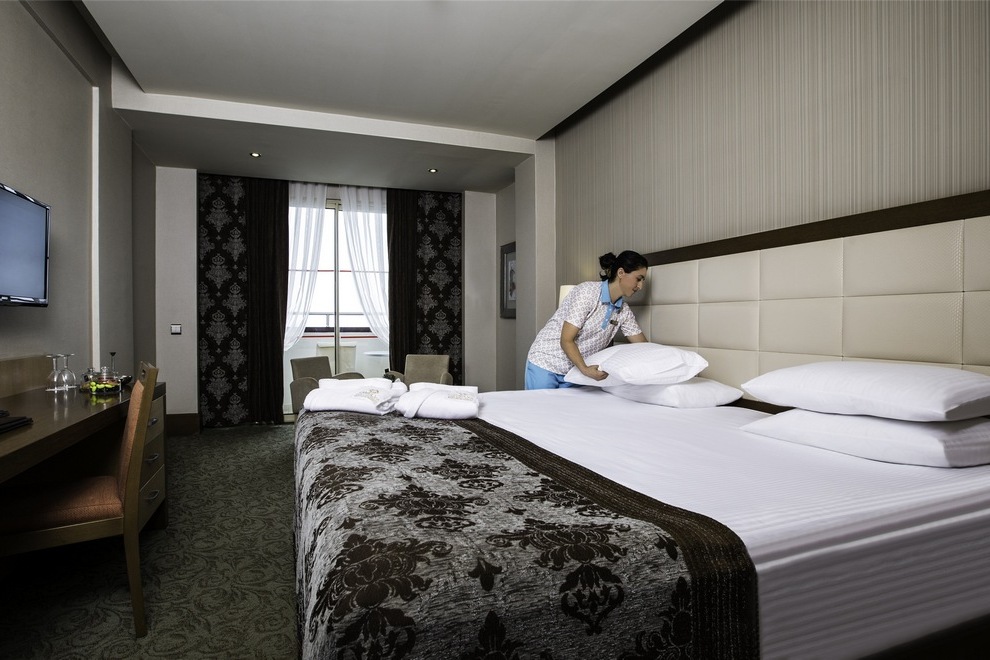 Стаите в хотела имат централна климатизация и са обзаведени с телевизор, минибар, сет за кафе и чай, директен телефон, Wi-Fi, баня с халат, чехли и сешоар, всяка от стаите има балкон. Ежедневно почистване на стаите.