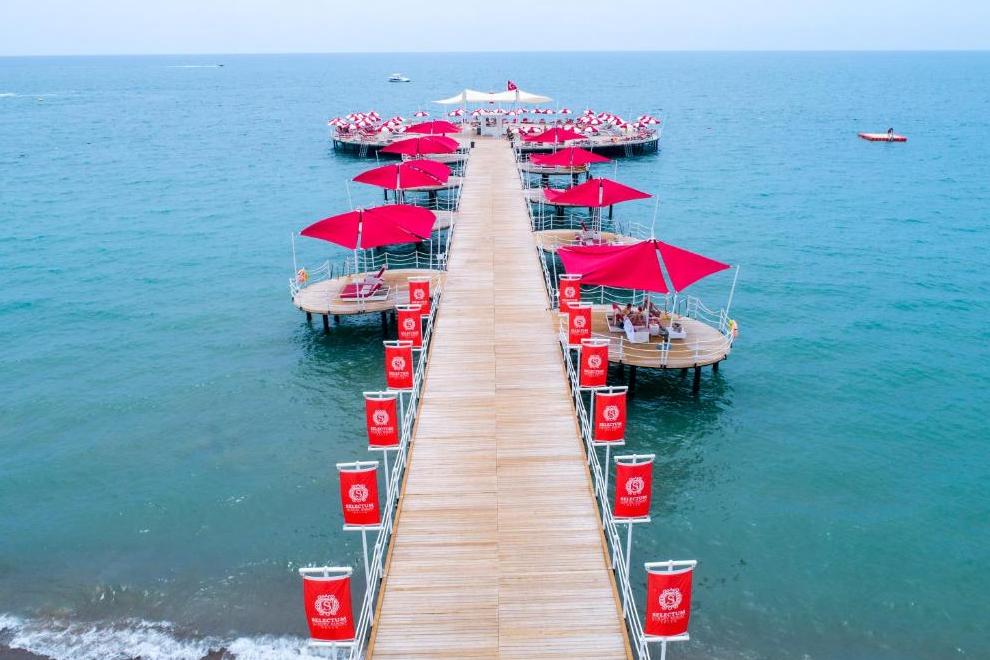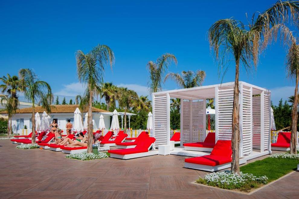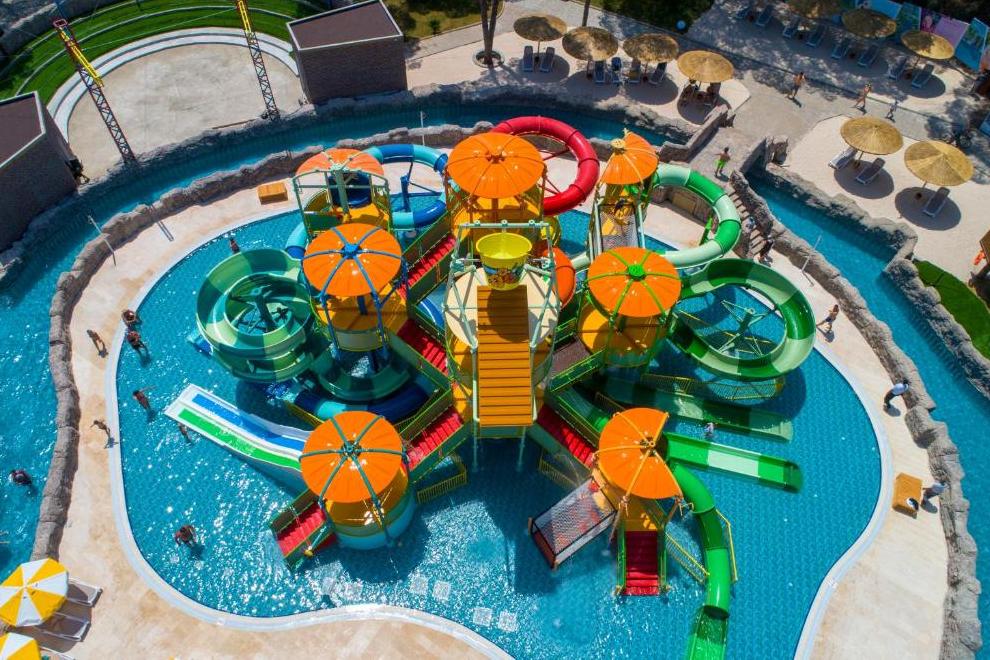 Собствен пясъчен плаж. 4 открити и 1 закрит басейн, аквапарк. Чадъри, плажни кърпи и шезлонги на плажа и при басейна се ползват безплатно.