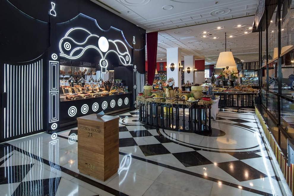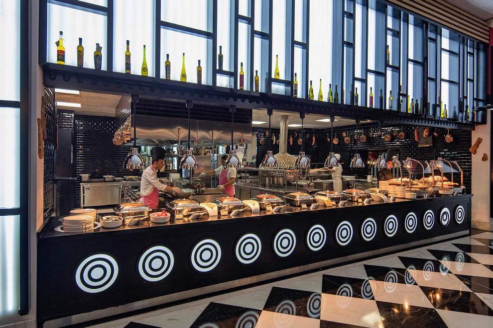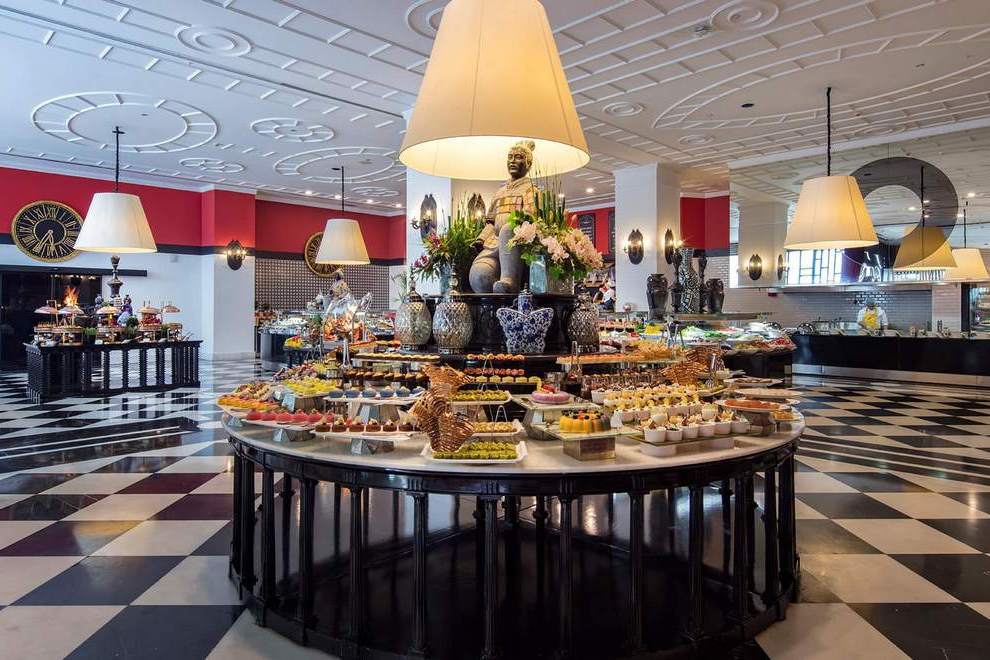 На разположение на гостите са основен ресторант, ресторант към клубните стаи, 4 а`ла карт ресторанта: рибен, италиански, барбекю (1 безплатно посещение на 1 от ресторантите при минимум 7 нощувки), 24/7 интернационален ресторант, суши бар, сладкарница, снек ресторант, гьозлеме, винарна. Разнообразни напитки се предлагат в 11 бара.