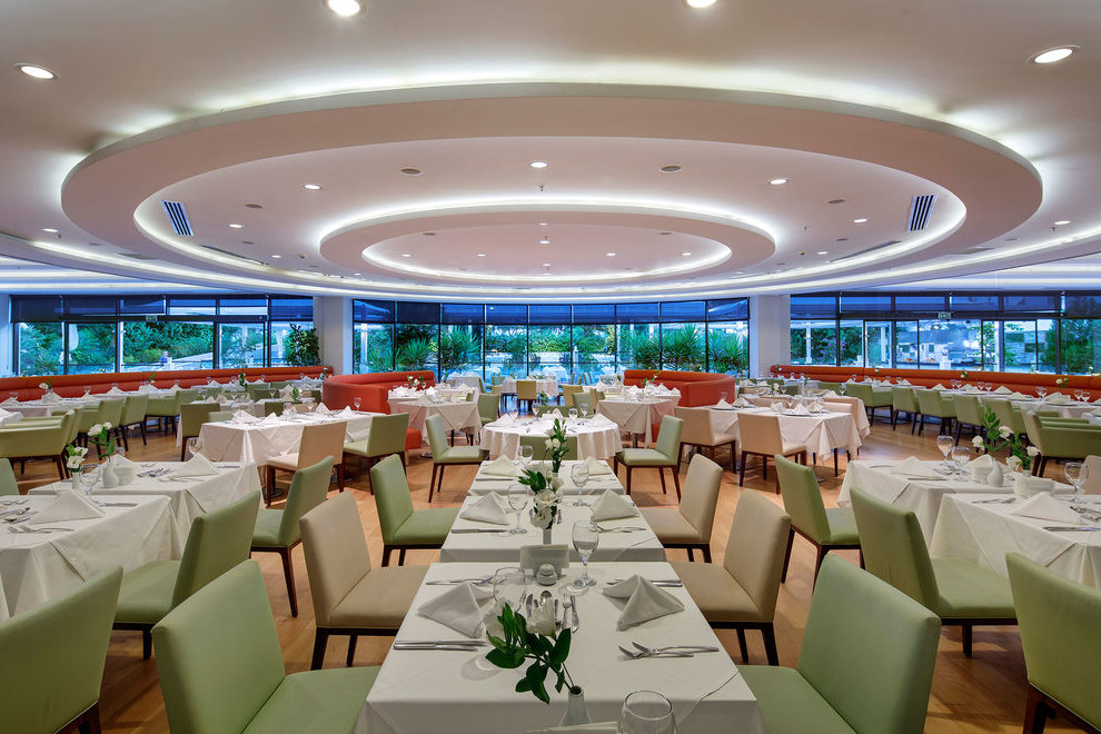 На разположение на гостите са основен ресторант и а`ла карт ресторант със средиземноморска кухня. Освежаващи напитки и закуски се поднасят в 8 бара и сладкарница.
