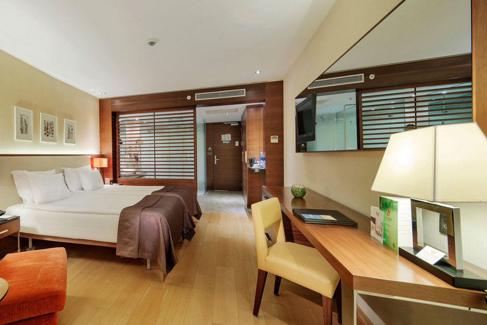 Хотелът се състои от 4 сгради, в които са разпределени 236 климатизирани стаи. Те са оборудвани с телевизор, телефон, минибар, сет за чай/кафе, сейф, самостоятелна баня, сешоар, Wi-Fi , балкон. таите се почистват ежедневно, смяна на спалното бельо - два пъти седмично.