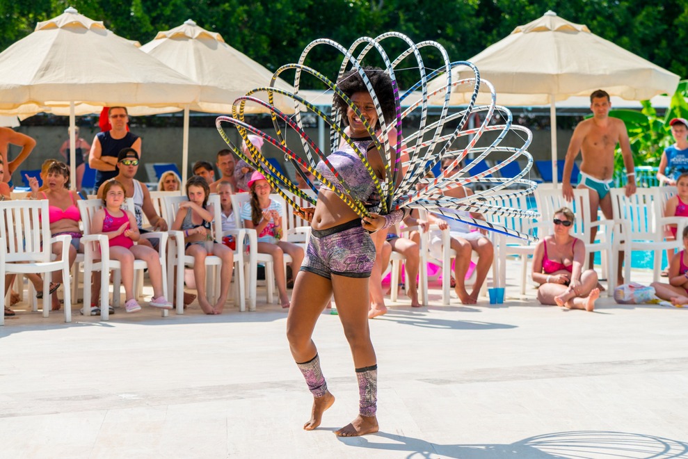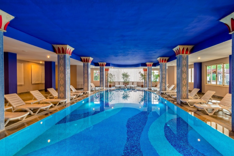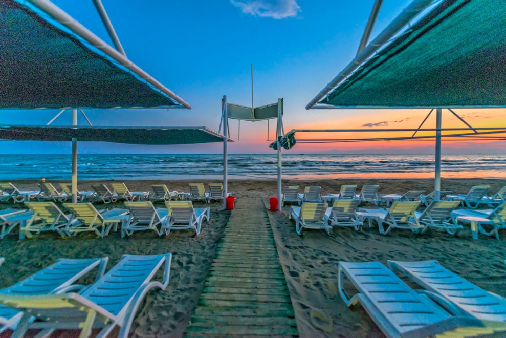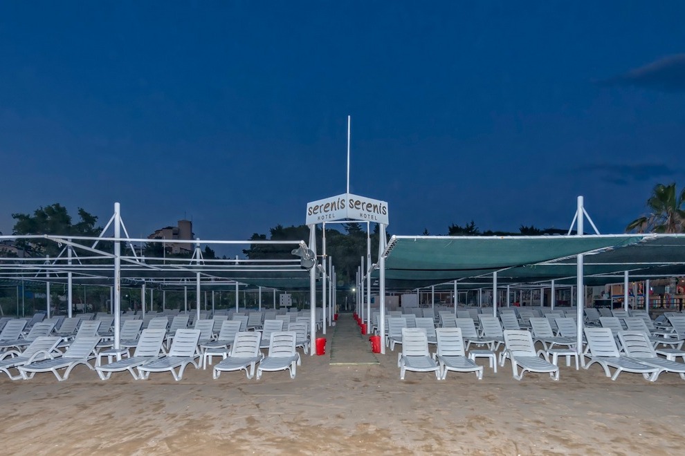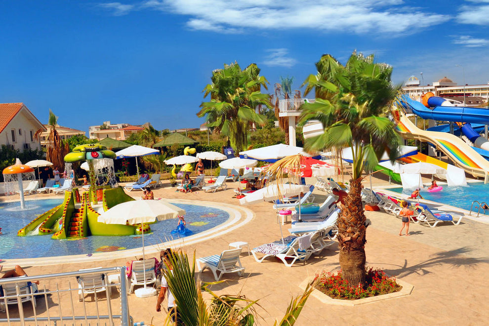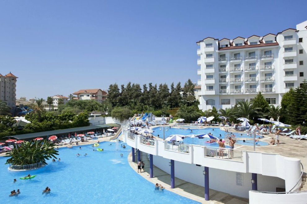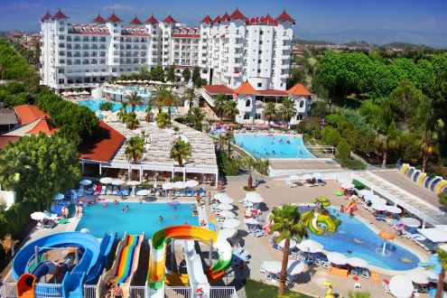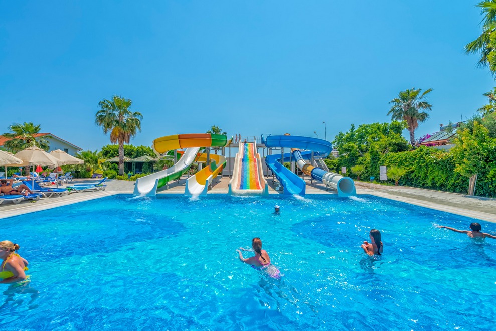 Хотелът разполага със собствен пясъчен плаж на 750 м, има шатъл. На разположение на гостите са 4 открити басейна със сладка вода, неотопляеми. 1 закрит басейн със сладка вода 77 кв.м, отопляем в зависимост от метеорологичните условия.5 водни пързалки, неотопляеми, отворени 10:30 - 12:00 ч. / 14:30-17:00 ч. В началото/края на летния сезон басейните и пързалките са отворени в зависимост от метеорологичните условия.