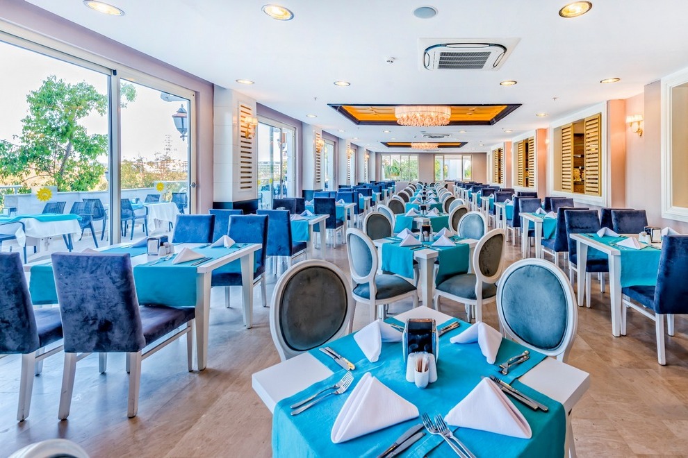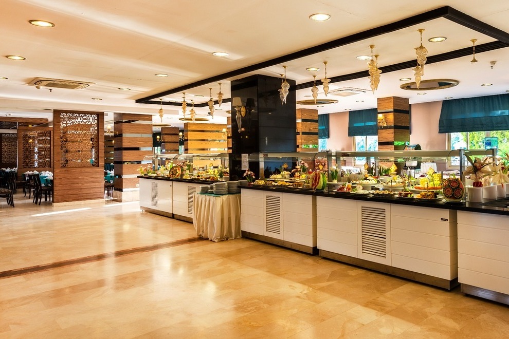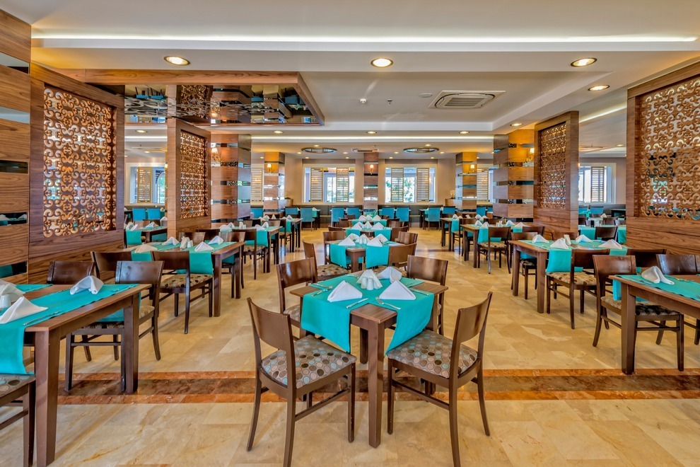 Хотелът има основен ресторант и а`ла карт ресторанти, които предлагат морска и османска кухня. Гостите могат да отдъхнат в лоби бара, бара на басейна или бара на плажа.