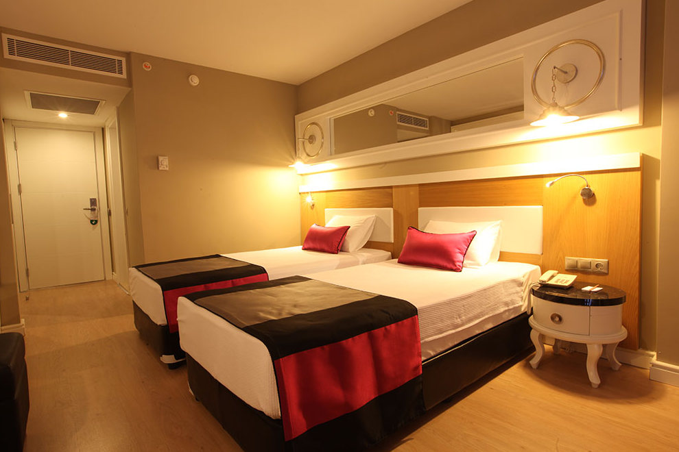 Хотелът с състои от една 6-етажна сграда (ма асансьори), в която са разпределени 416 климатизирани стаи: Standard Room Sea View (18 кв.м), 57 Family Room Land View (28 кв.м), Promo Room (18 кв.м), Family Room Sea View (28 кв.м), Standard Room Land View (18 кв.м) и Family Room (Duplex/Maisonette) (40 кв.м). Стаите са оборудвани с телефон, телевизор, минибар, сейф, баня с душ, сешоар, Wi-Fi, балкон. Ежедневно почистване на стаите.
