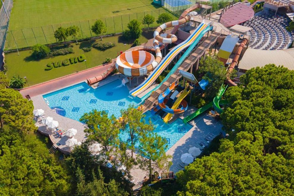 Собствен пясъчен плаж с кей. На разположение на гостите има 6 открити и 1 закрит басейн, 7 водни пързалки.