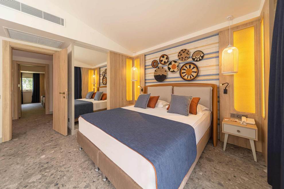 Хотелът се състои от основен 5-етажен корпус и тринадесет 2-етажни блока Lake Houses, в които са разпределени 503 стандартни стаи, 7 двустайни апартамента (гостна, една спалня с врата, баня с джакузи, 1 минибар, макс. 4 чов., 91 кв.м); 95 двустайни семейни стаи (две спални с врата, макс. 4 чов., 43 кв.м); Lake Houses (всички с гледка към басейн или към градина, изход към басейна от стаите на първия и втория етаж): 134 стандартни стаи във вилите (всички на 1 или 2 етажа, макс. 3 чов., 31 кв.м); 20 двустайни семейни стаи във вилите (две спални с врата, макс. 4 чов., 54 кв.м). Всички стаи са оборудвани с телевизор, телефон, минибар, сейф (безплатно), самостоятелна баня, сешоар, балкон или тераса. Стаите се почистват ежедневно, спалното бельо се сменя три пъти седмично.