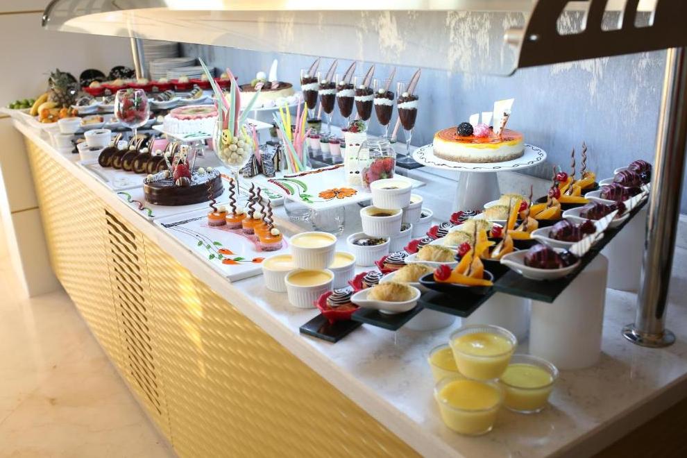 Хотелът разполага с основен ресторант, а`ла карт ресторант, 3 бара, сладкарница. Ресторантът предлага "шведска маса" с разнообразна интернационална кухня, също така менюта с традиционна турска кухня. Посетителите могат да се наслаждават и на питиета в луксозна обстановка в лоби бара. A-la cart All inclusive концепцията включва закуска, обяд и вечеря на шведска маса, междинни хранения, местни алкохолни и безалкохолни напитки без лимит.