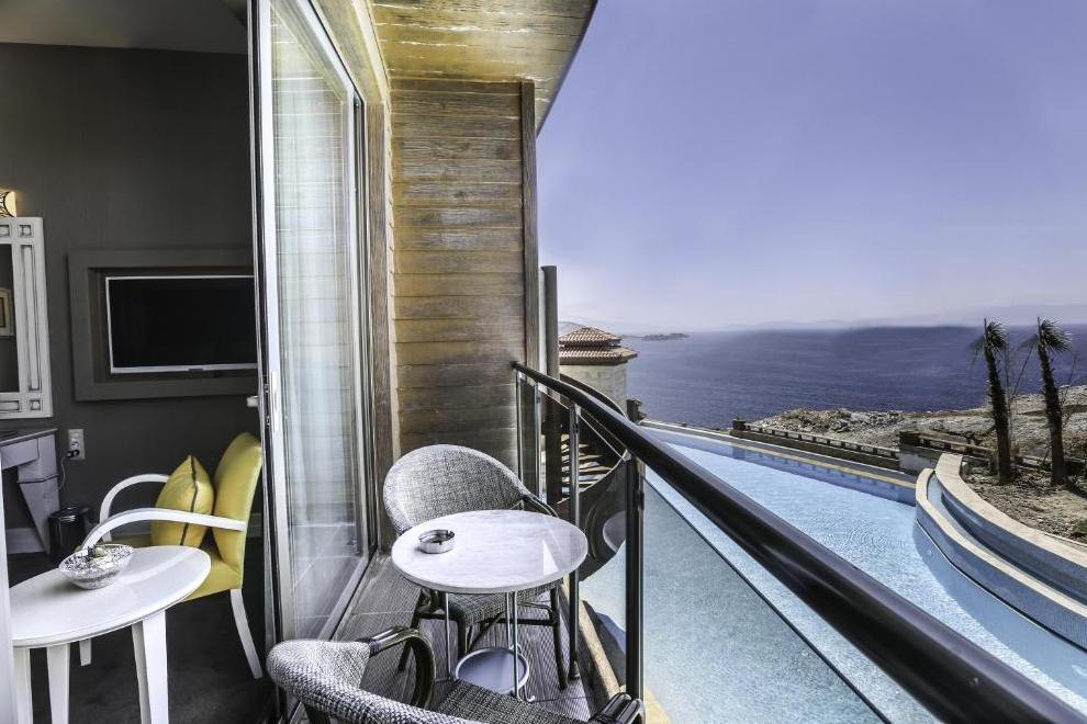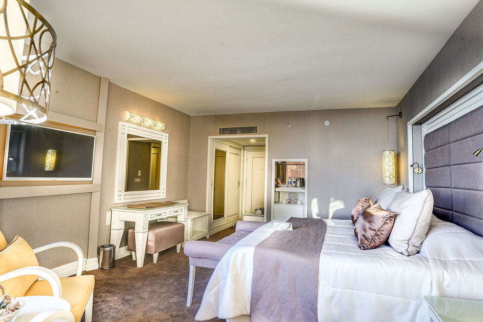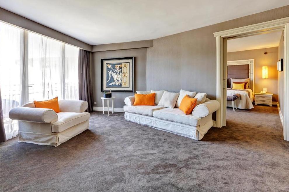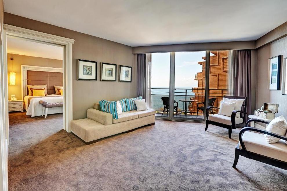 Хотелът посреща гостите си в 144 климатизирани стаи, от които 101 стандартни стаи (35 км.м), 18 делукс стаи с басейн (40 кв.м), 7 суита (60 кв.м), 4 фамилни стаи (60-70 кв.м), 4 супериор стаи (35 кв.м), 4 президентски суита (90 кв.м). Всички стаи имат телевизор, телефон, баня с душ или вана, сешоар, сет за чай/кафе, минибар (безплатно - вода и безалкохолни напитки се зареждат 2 пъти седмично), сейф (безплатен), балкон или тераса, Wi-Fi интернет (безплатно).